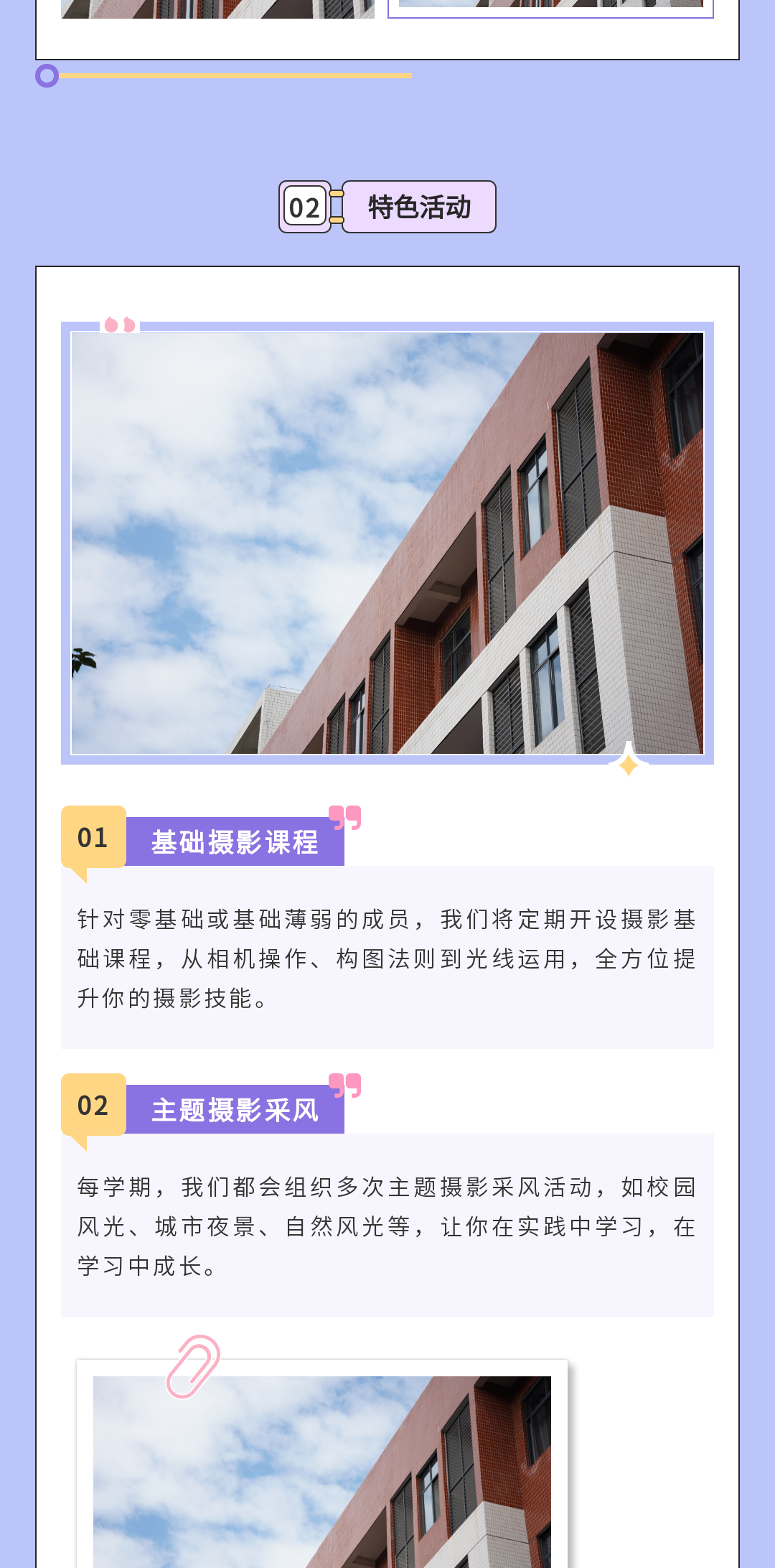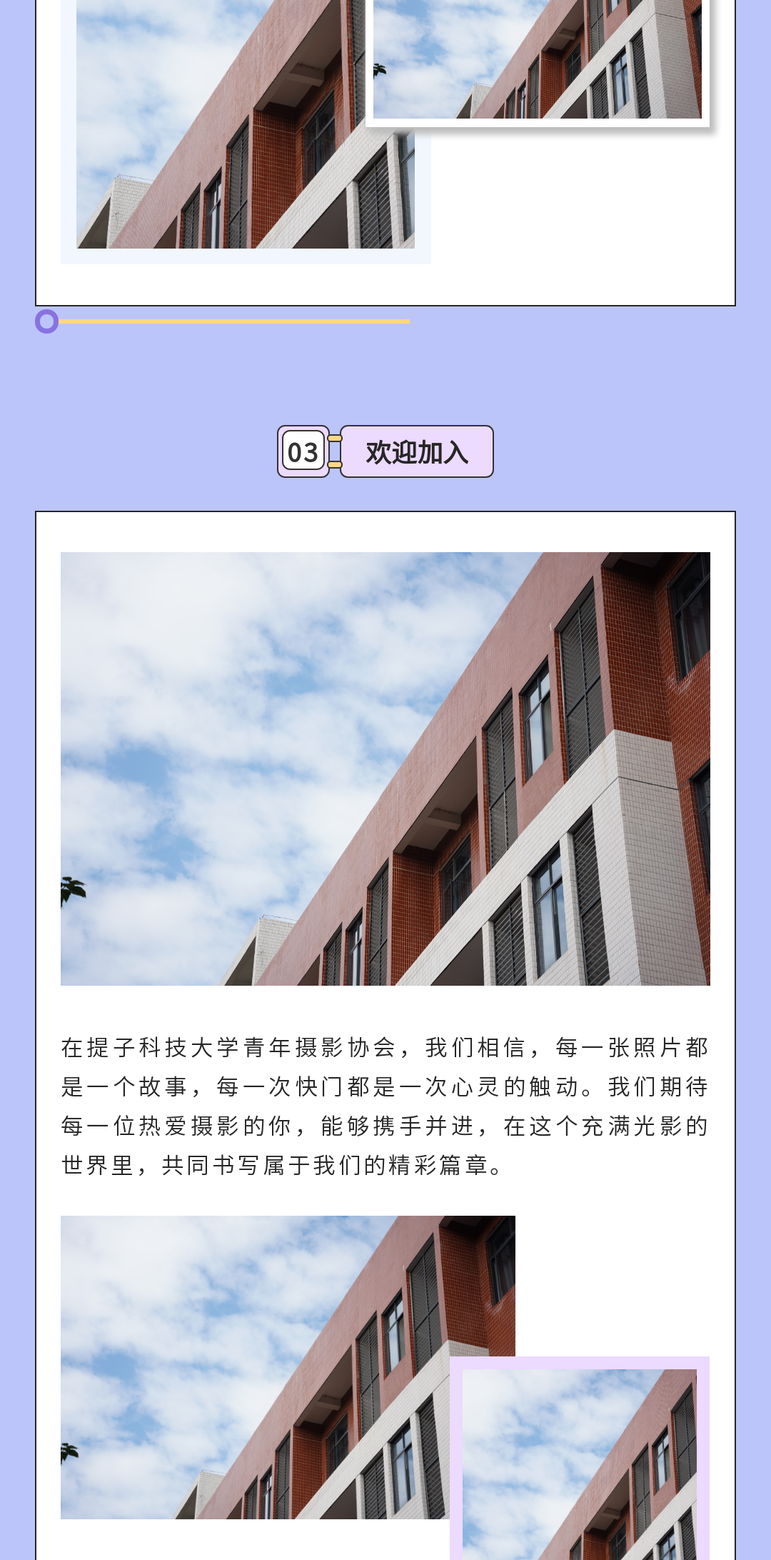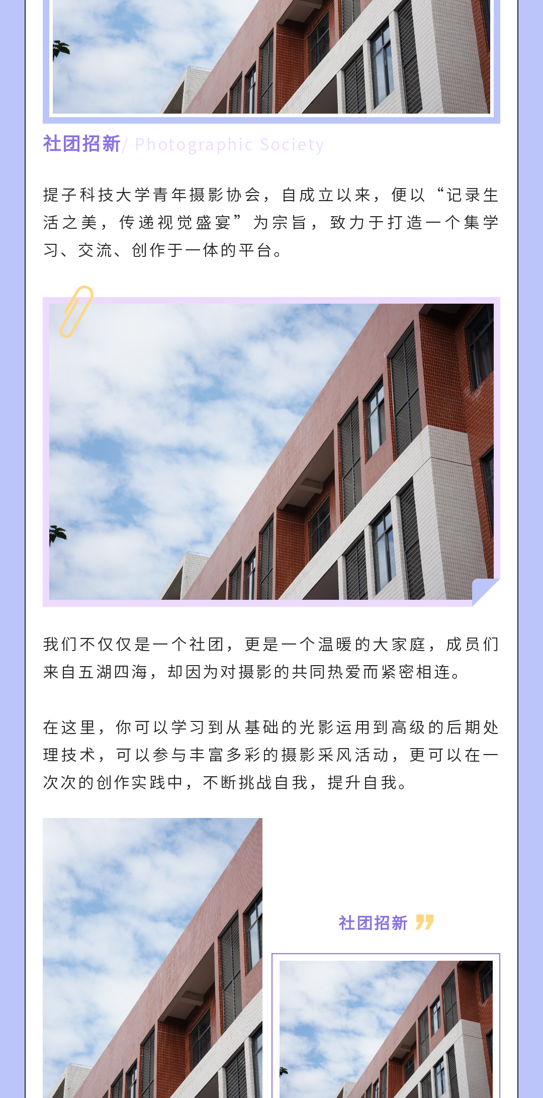 大学在开学季这个阶段主要会涉及的选题包括:开学通知、军训通知、社团招新、迎新晚会等。排版风格主要以简约风为主,无需过多的排版元素,让整体看上去简洁即可。