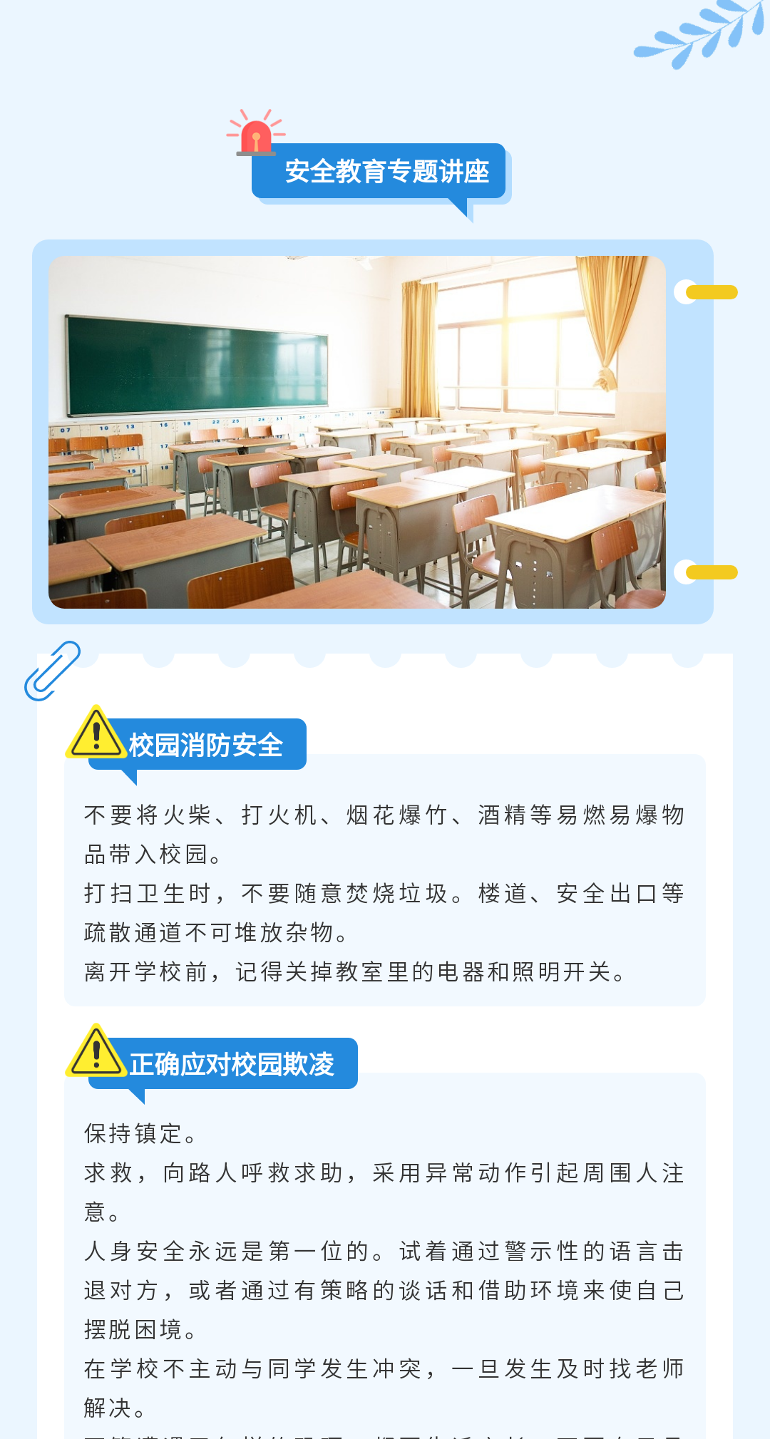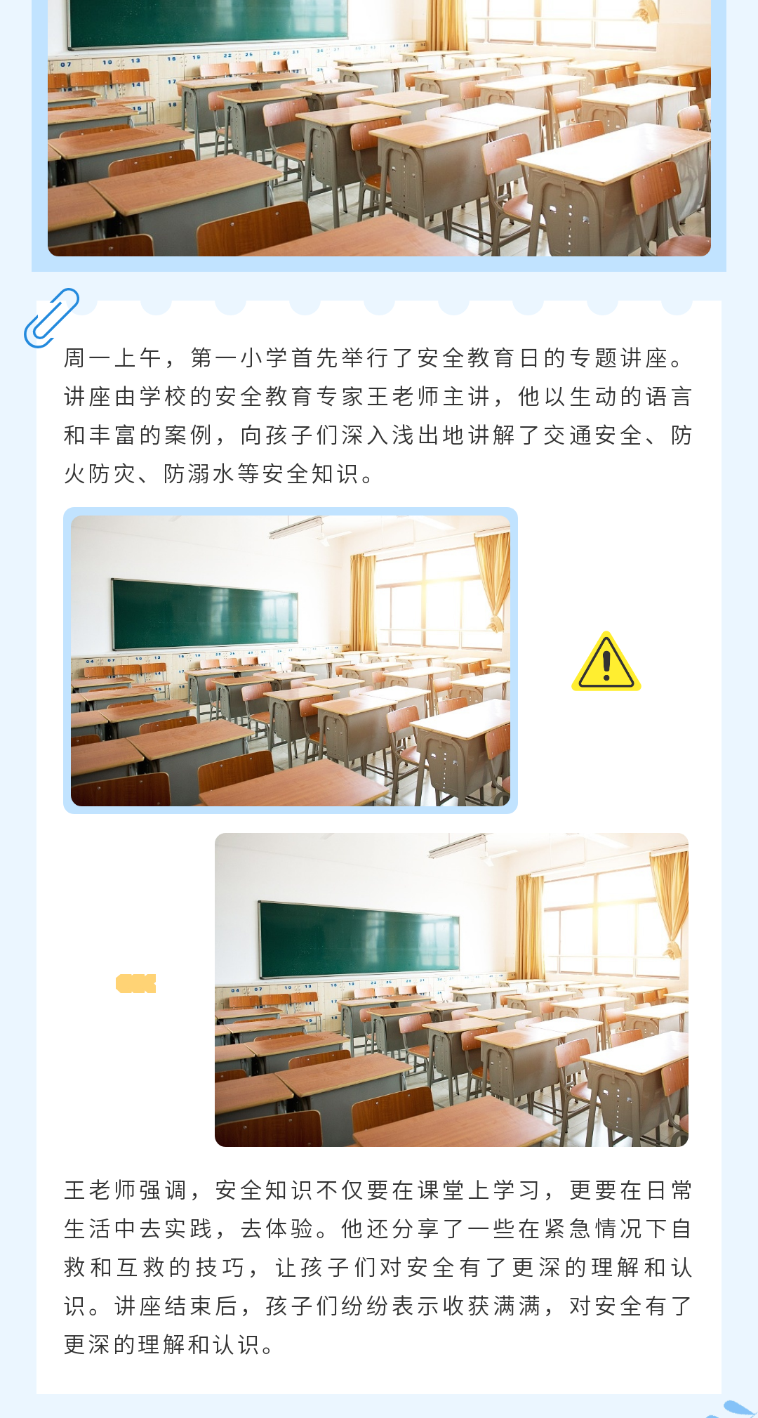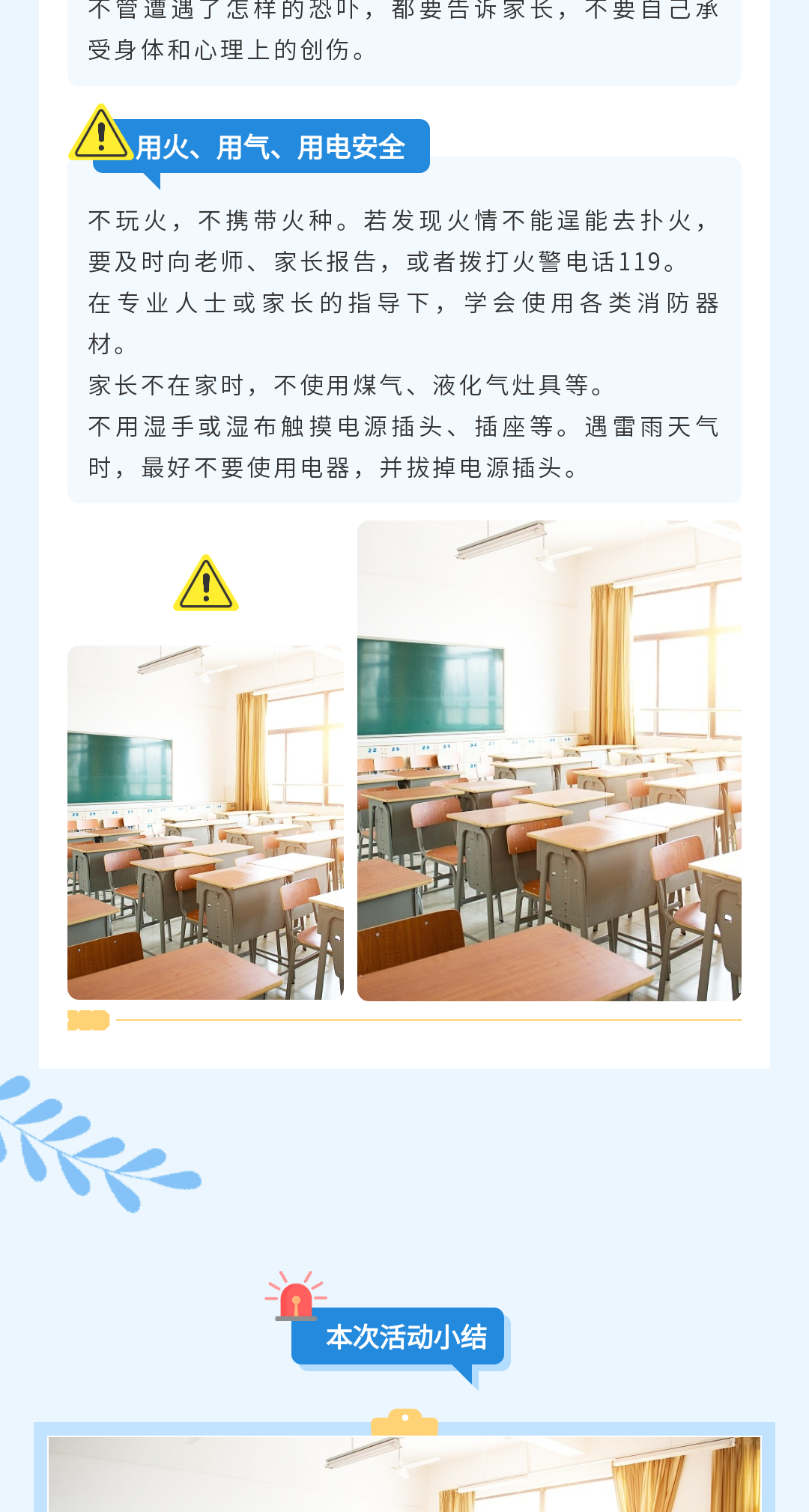 小学在开学季这个阶段主要会涉及的选题包括:开学通知、开学第一课、安全教育活动等。排版风格主要以卡通、清新风为主,排版颜色依然可以选择一些相对明亮的色彩,比如绿色、蓝色、黄色等,选择的排版元素可以根据主题内容挑选。
