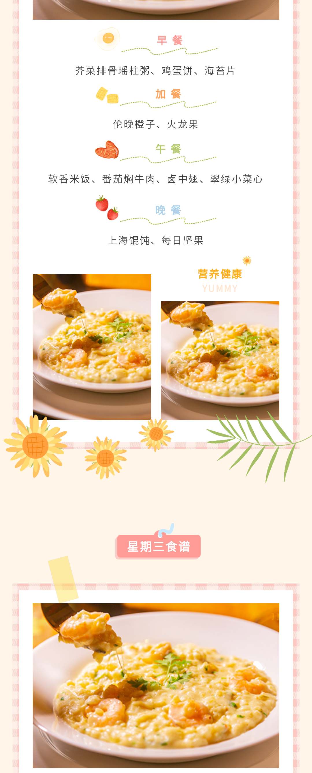 幼儿园在开学季这个阶段主要会涉及的选题包括:入园须知、幼儿园食谱、生日会、各类活动等。排版风格主要以可爱、卡通风为主,排版颜色的选择上可以挑选一些相对明亮的色彩,比如绿色、蓝色、粉色、黄色等,可以多使用元素:铃铛、气球、风车等,这样能够丰富整个版面的视觉效果。