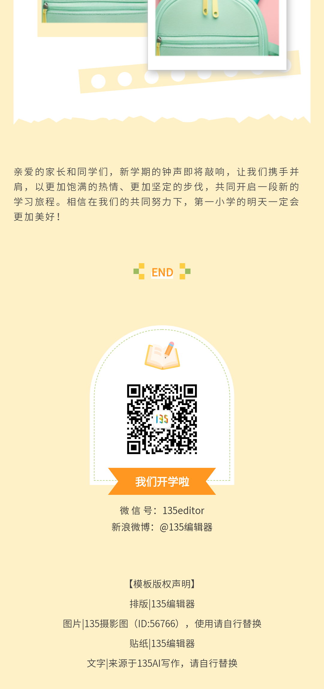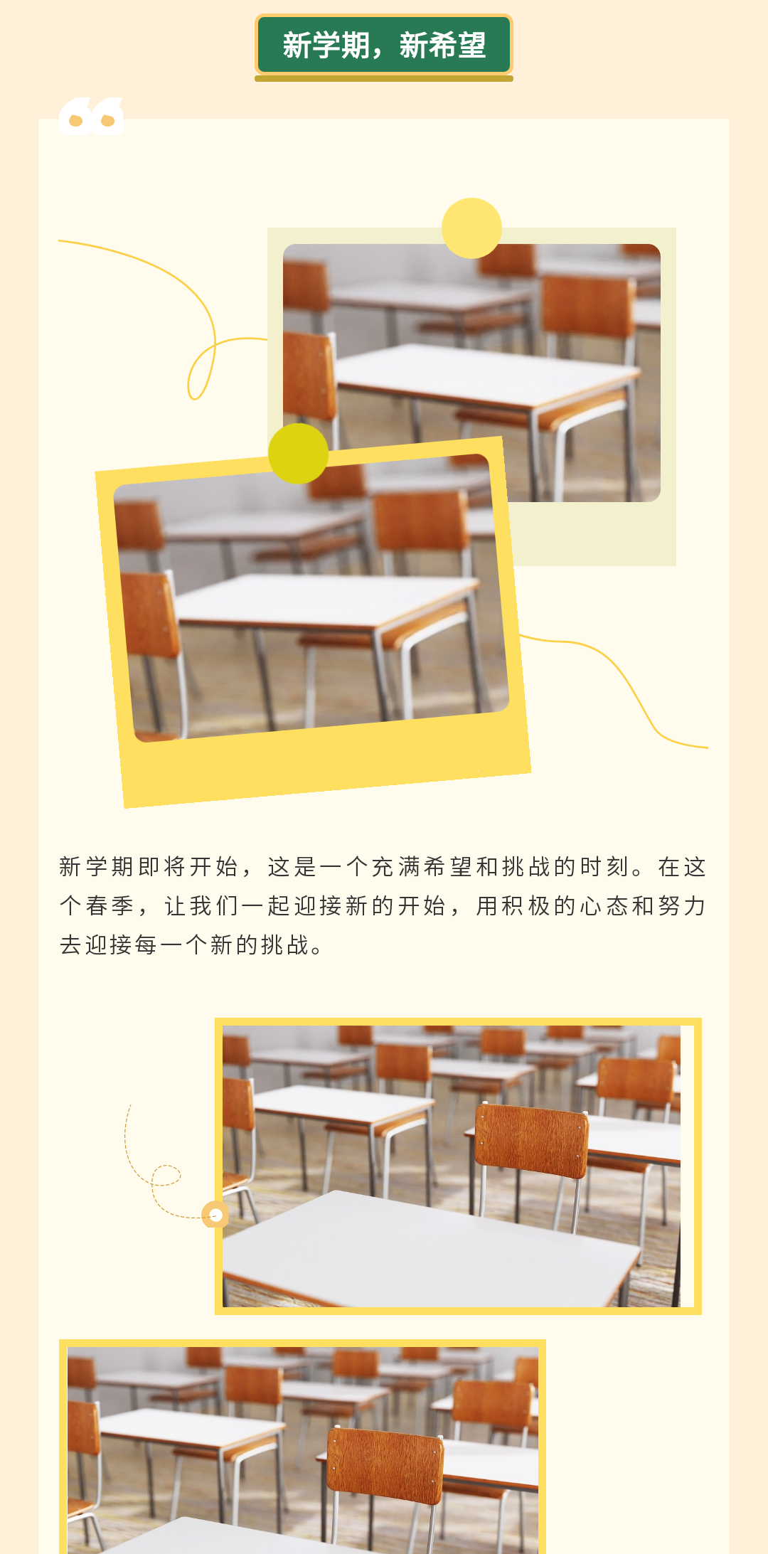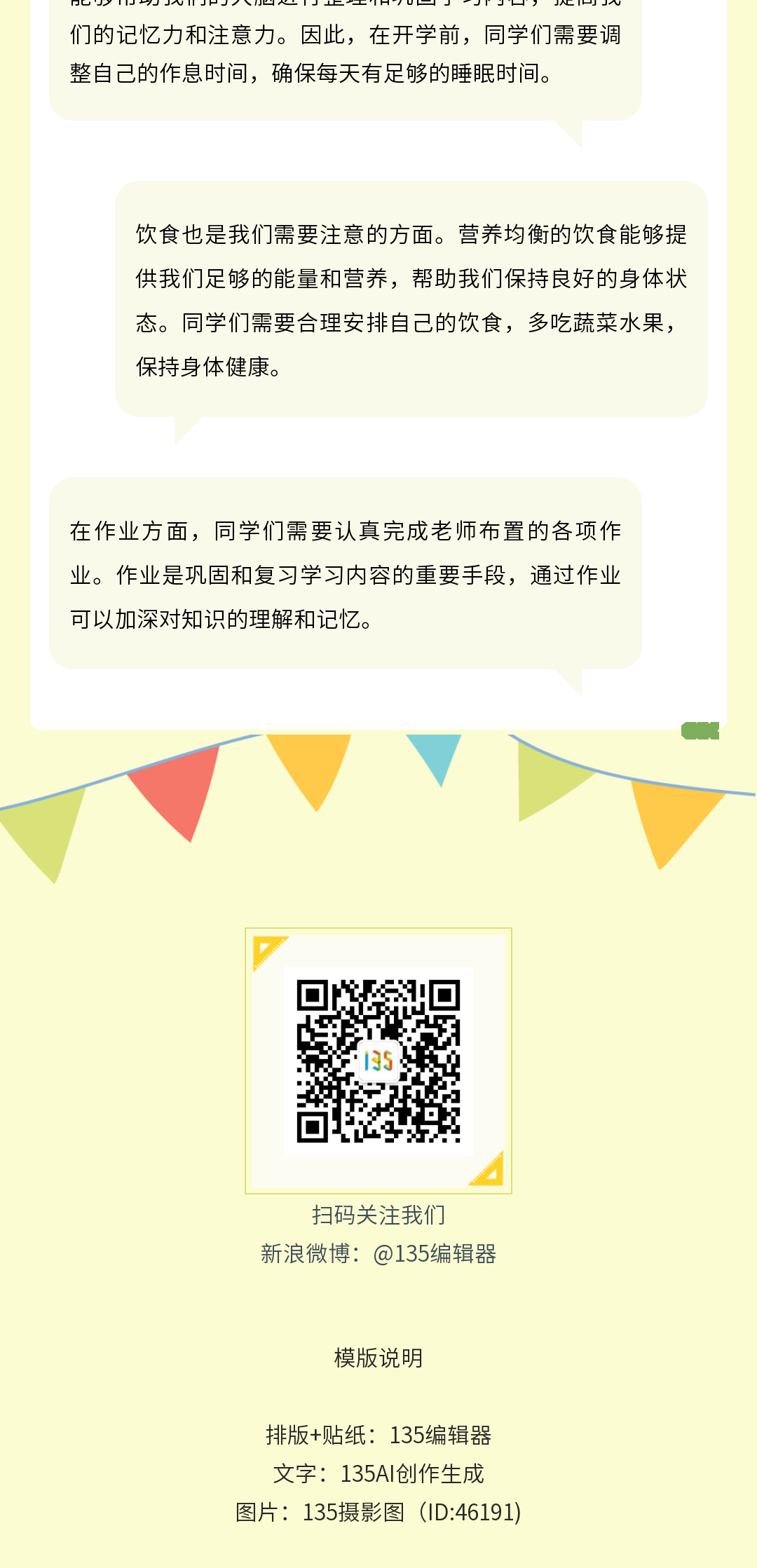 迎接新学期,轻松制作公众号文章!探索专为幼儿园、小学、中学和大学设计的开学季模板,从入园须知到社团招新,一键提升您的内容吸引力。立即查看,让新学期的传播更加得心应手。