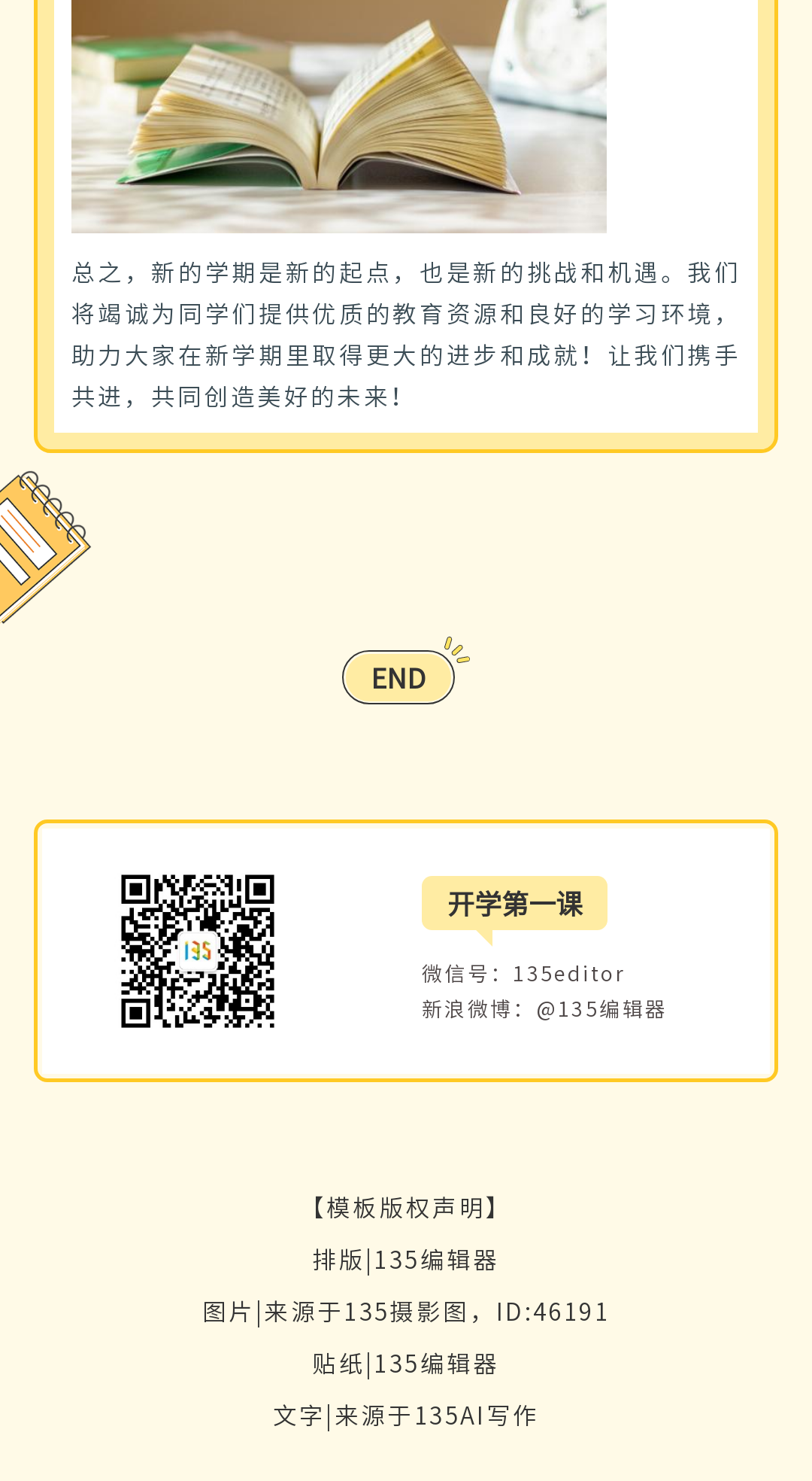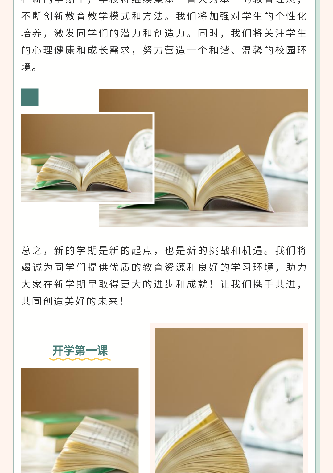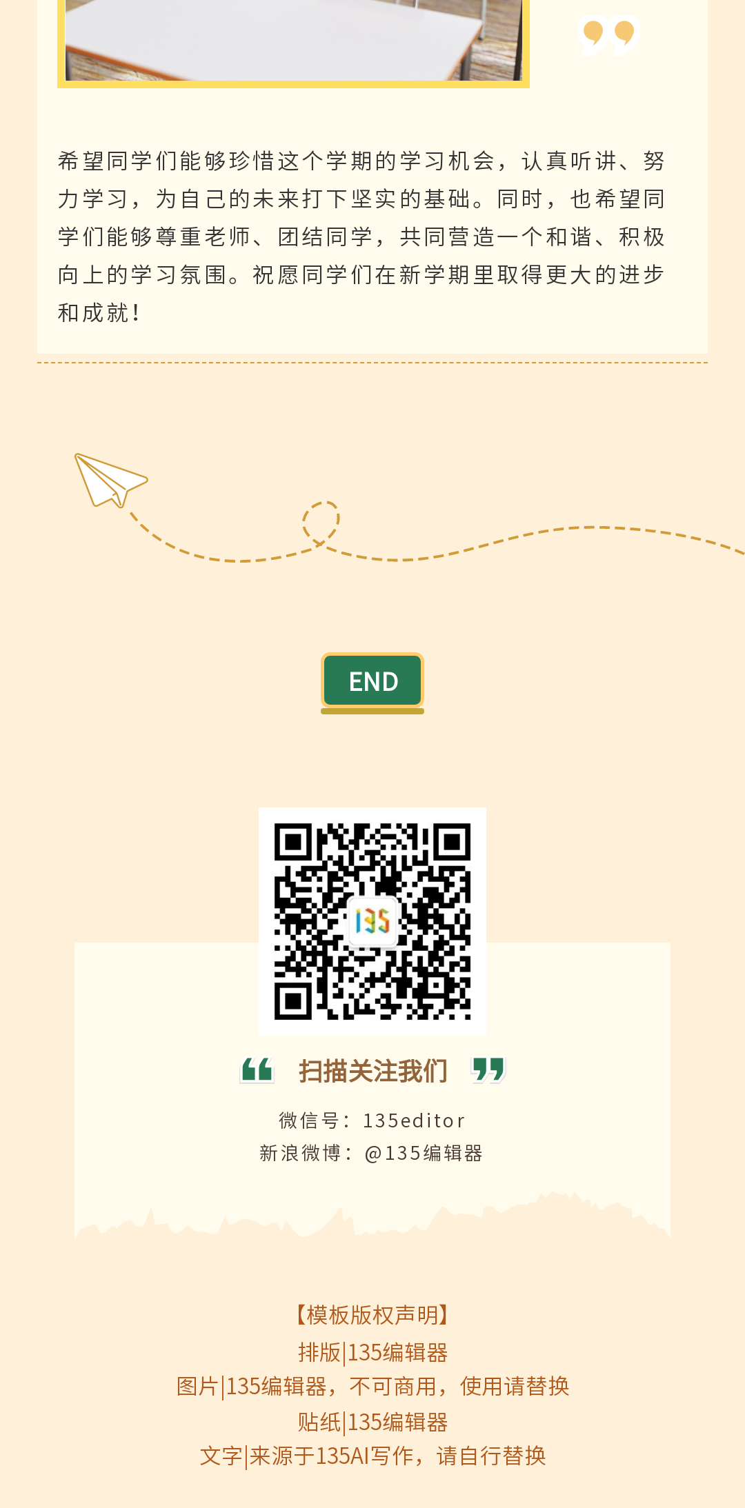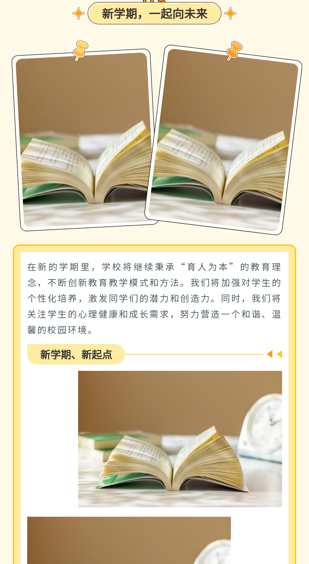 迎接新学期,轻松制作公众号文章!探索专为幼儿园、小学、中学和大学设计的开学季模板,从入园须知到社团招新,一键提升您的内容吸引力。立即查看,让新学期的传播更加得心应手。