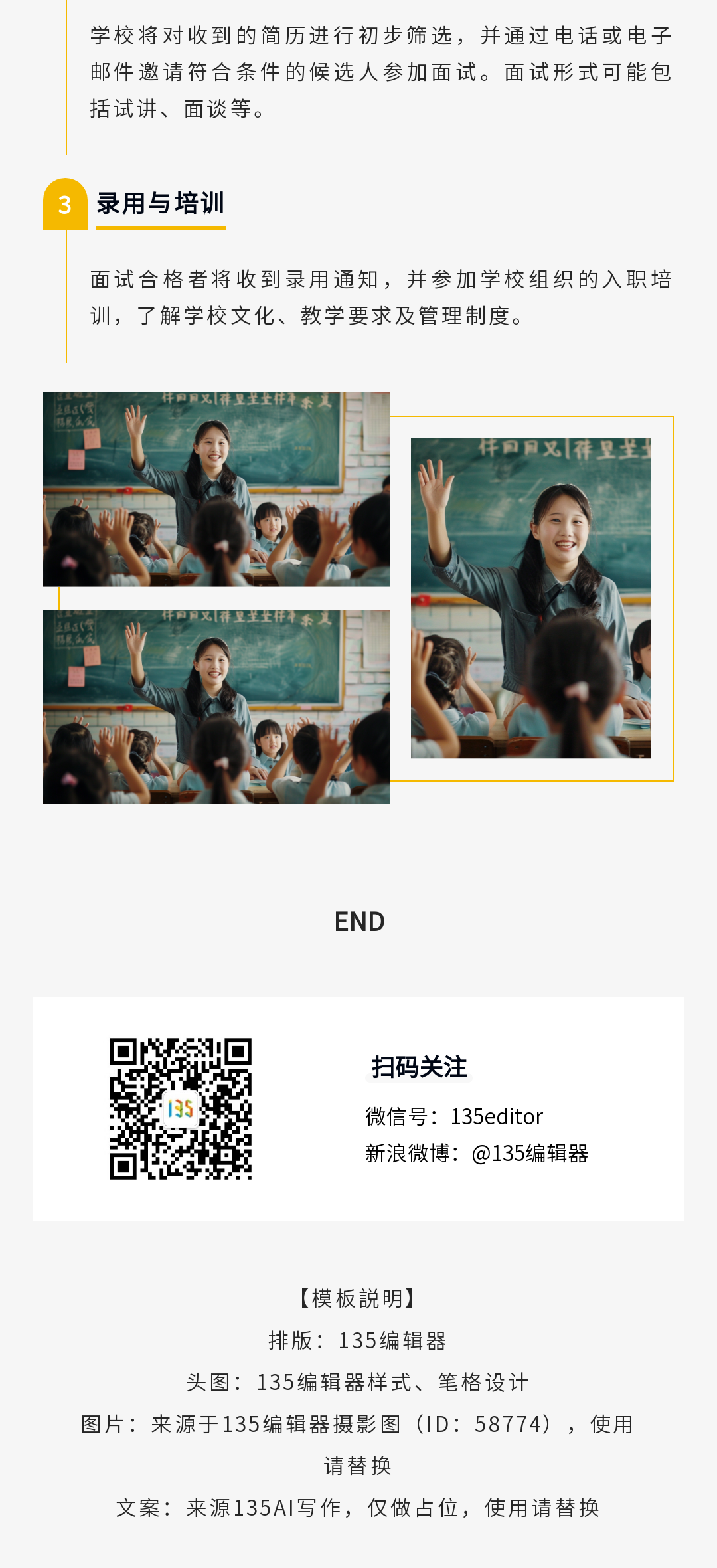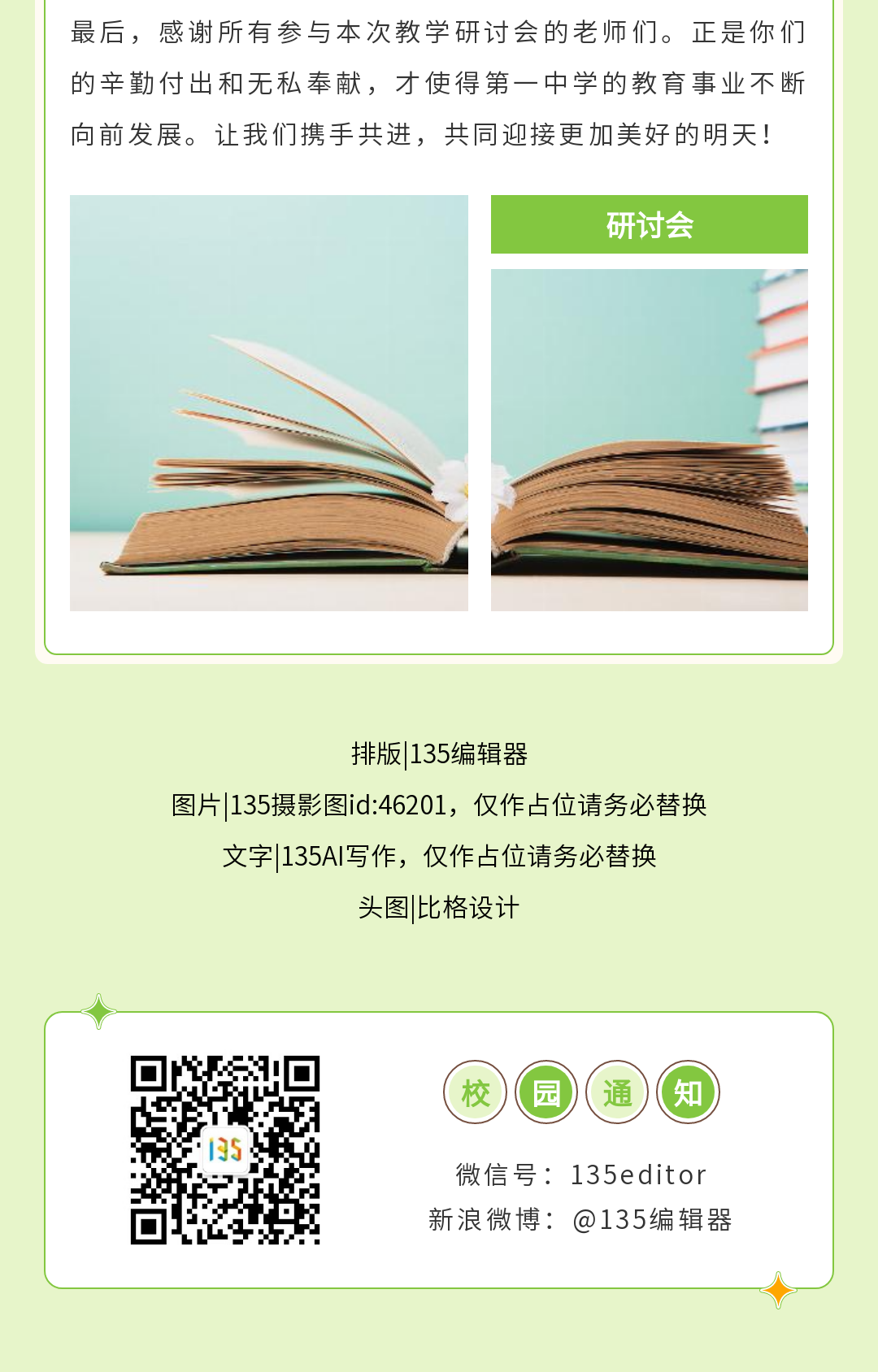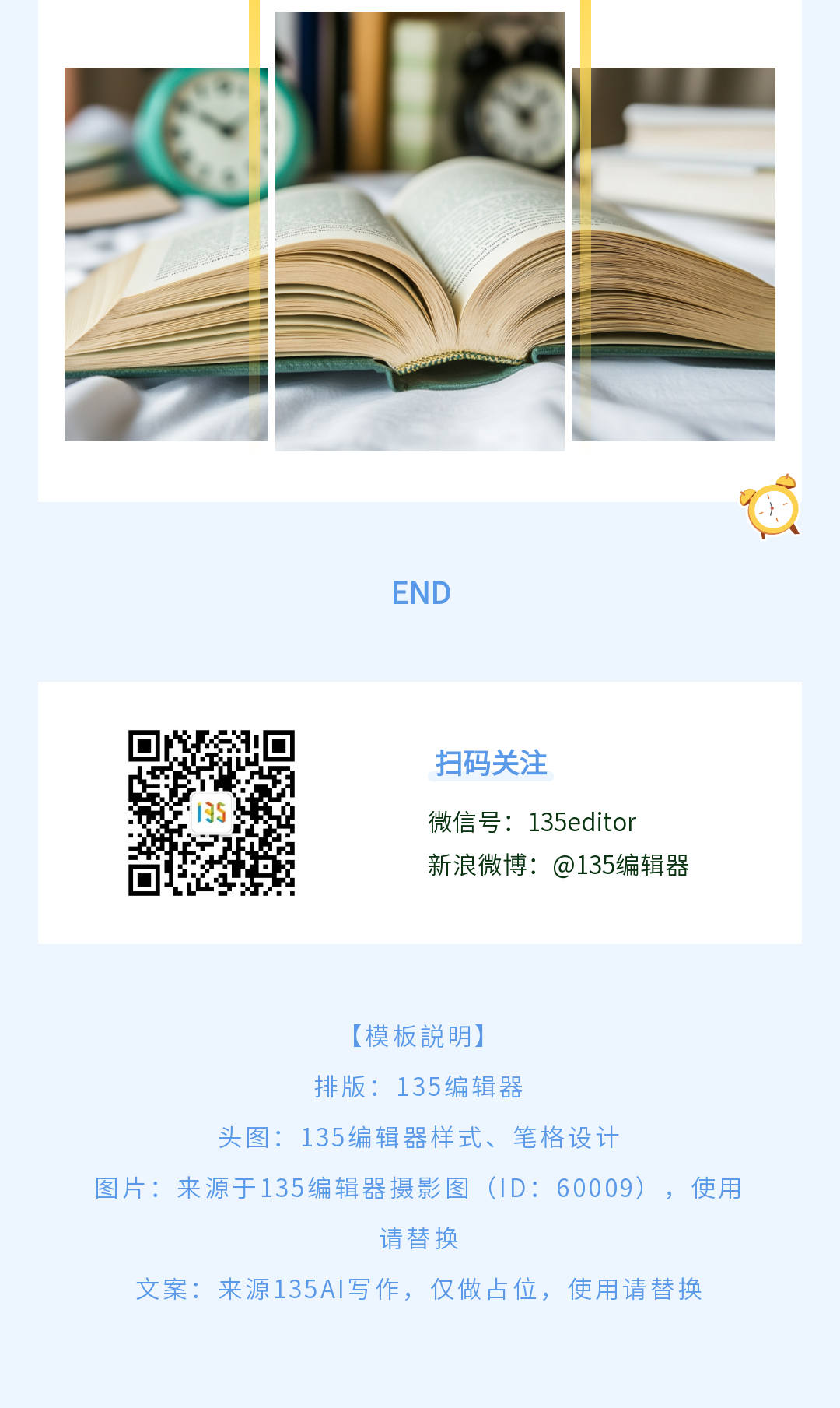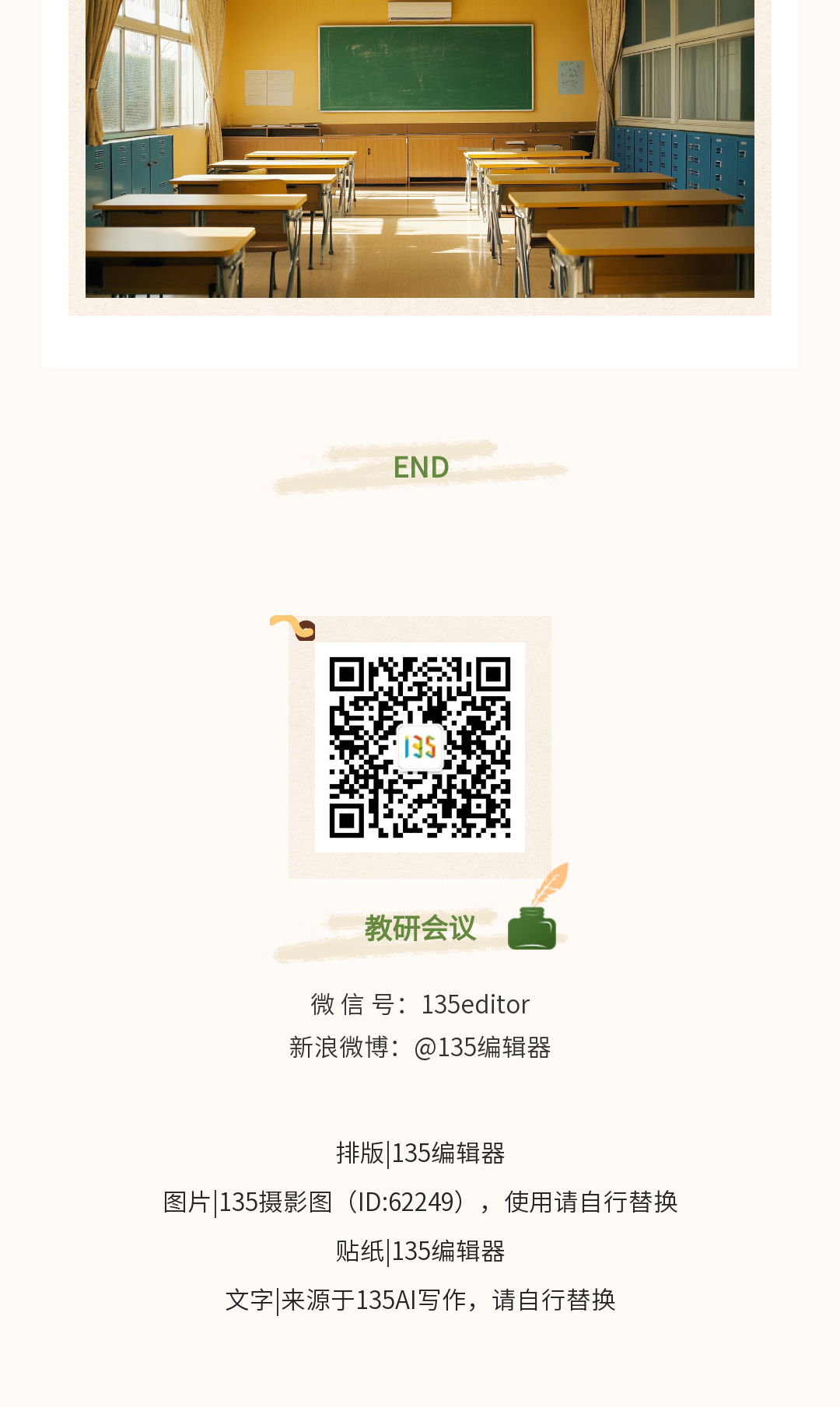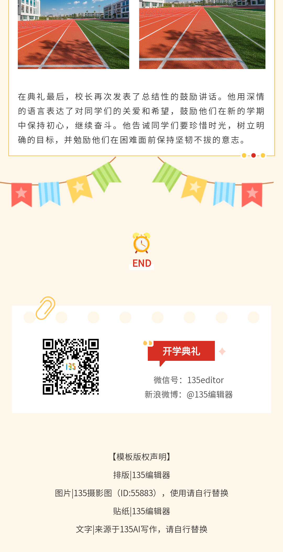 新学期高效排版必备!135编辑器提供幼儿园食谱、小学心理健康、中学开学典礼、大学双选会等全学段公众号模板,支持一键替换图文,快速完成推文设计。内含免费开学季专题模板ID及SVG创意玩法,扫码回复“开学季”立即获取!助您轻松应对开学宣传,提升排版效率!