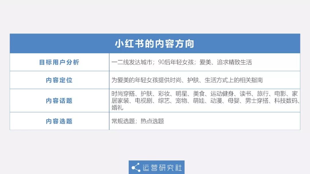 针对这样的用户群体,小红书的内容定位是为爱美的年轻女孩提供时尚、护肤、生活方式上的相关指南。