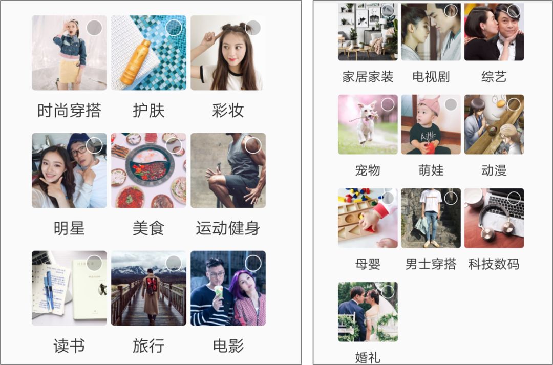 一是,提供用户近 20 个内容分类,让用户选出自己最感兴趣的 4 个。用户注册成功进入首页后,小红书会根据用户的选择做机器算法推荐,推送用户感兴趣的内容。