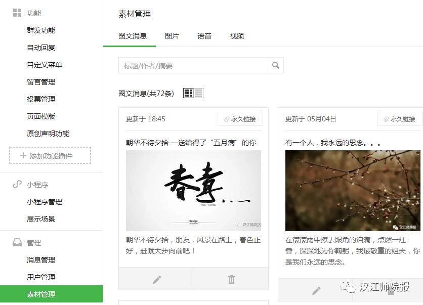 可以看到别人在公众号后台的留言和建议等,回复需要及时,有时间限制,过了就不能再回复。
