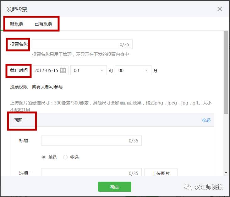 (若有已经做好的可以直接插入,在功能区有一个【投票管理】,里面可以制作)