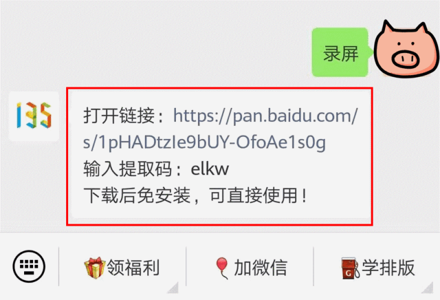可以说这是一款一看即会的录屏软件了,中文菜单,比英文原版更容易操作,实在是每个新媒体小编必备佳品,你还在等什么,赶紧关注135编辑器,进入公众号输入录屏免费获取吧!😜