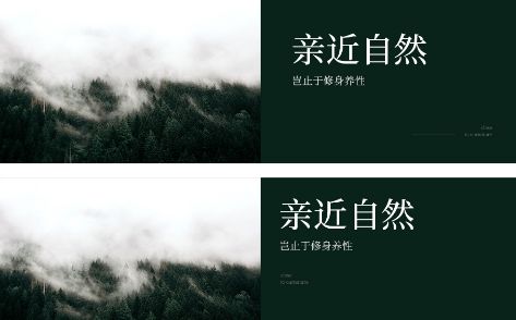 上图两张基本一致,上图就是移动了一下文案和装饰英文的位置,以及加了根条线,却给人不一样的感觉,可以想想为什么。
