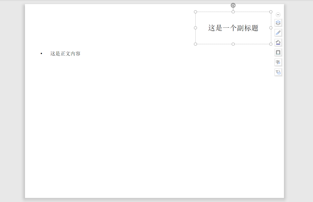 OK,那我们先新建一个ppt。顺手编辑一个副标题。在右上角,当然这只是举个例子,左上角、右上角都是常用位置,看设计需求。