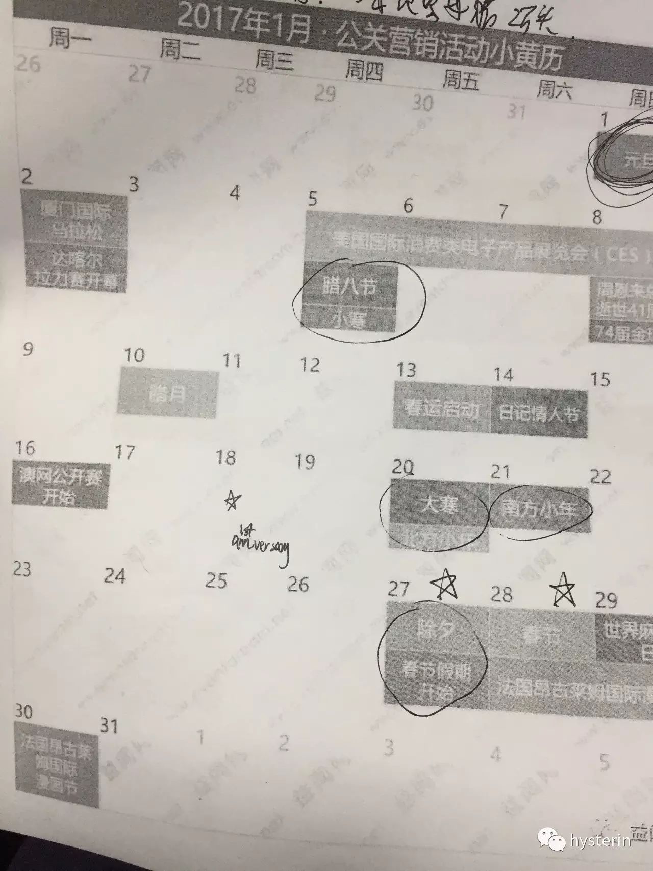 网上也有《公关营销活动小黄历》,大家可以愉快地用起来了。用法大家可以自己选择,我是打印下来配合自己的台历本使用,非常方便。
