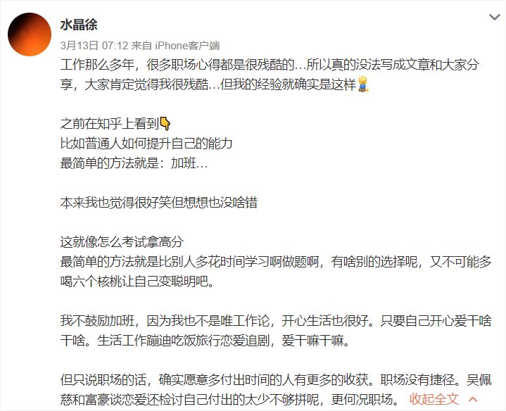具体应该怎么行动呢?记得之前在深夜发媸创始人@徐老师 的微博看过这样一段话,深有同感。如果自己在工作上实在是能力不足,那么最快的方法就是花更多的时间去学习。