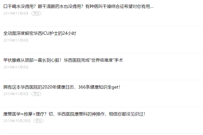 ❷ 医院类公众号主要以提供生活常识,医院日常资讯和功能服务为主。如下↓