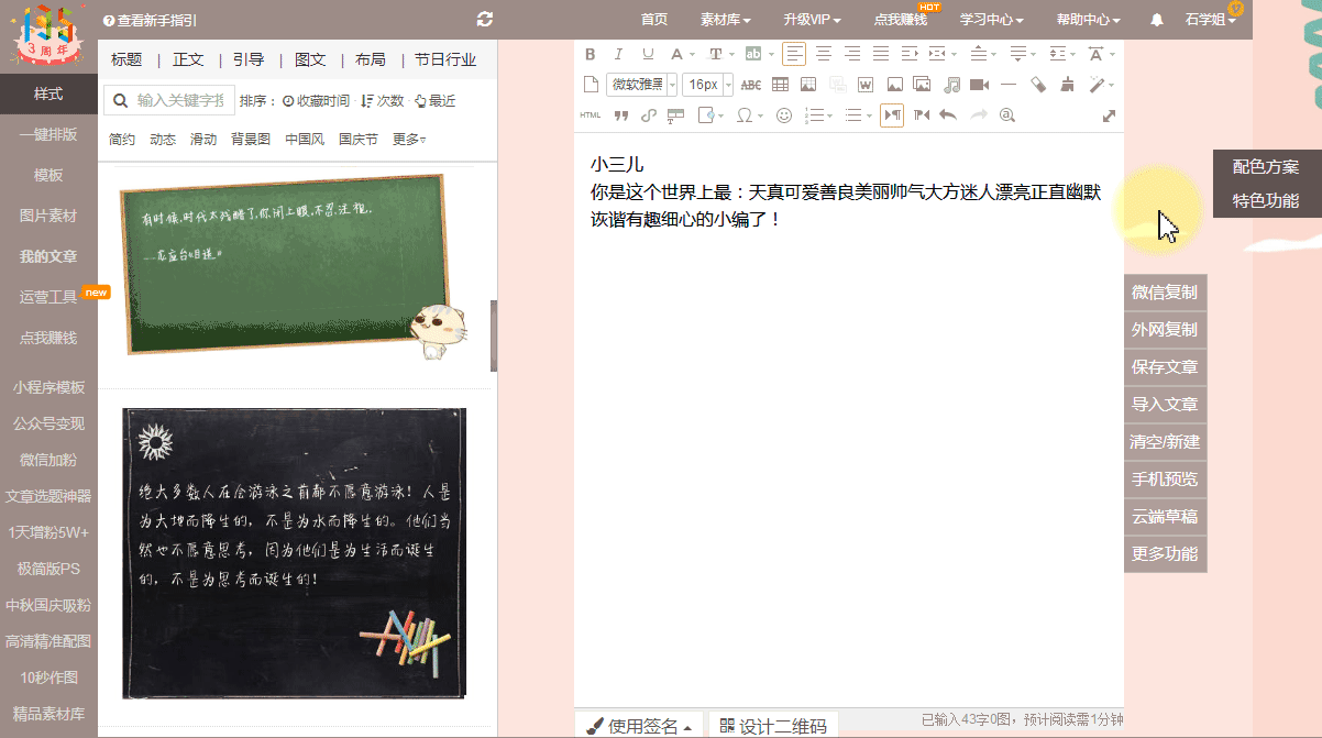 刷图样式的功能其实就相当于是“秒刷”功能和“转为图片”功能的结合。我这么解释不知道前端哥哥会不会打我...目前,刷图图片也是微信后台更改文字字体的方法之一。