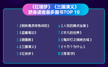 同时,陌陌通过分析用户填写的书籍信息,公布了陌陌读者数量最多的十大图书,其中《钢铁是怎样炼成的》《红楼梦》《三国演义》等经典名著位列其中,近几年火爆的《盗墓笔记》《狼图腾》《鬼吹灯》等娱乐性较强的图书也深受读者喜爱。
