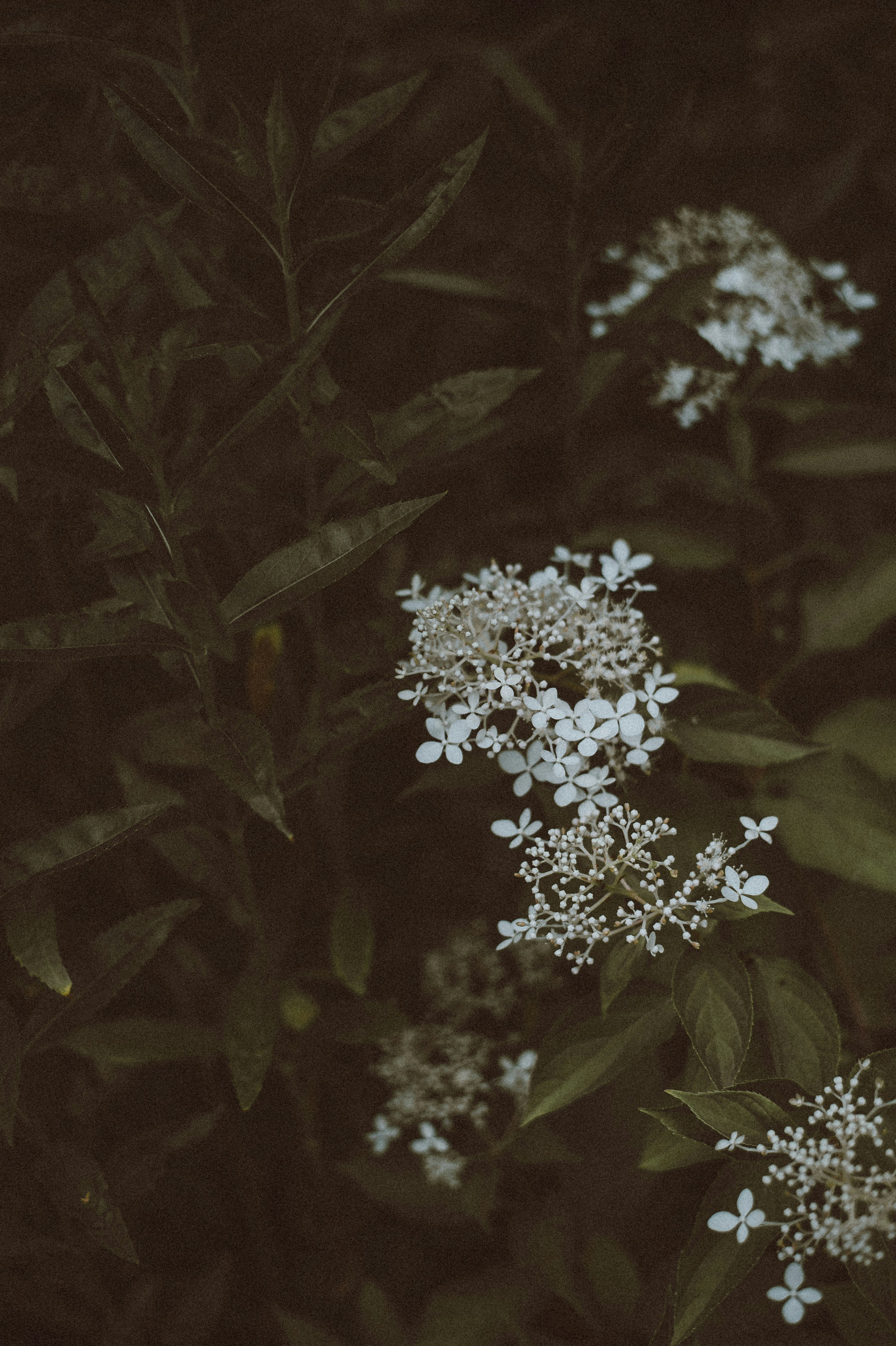 花,白色,绿色,花瓣,植物,布什,花园,公园,心情,黑暗,民间