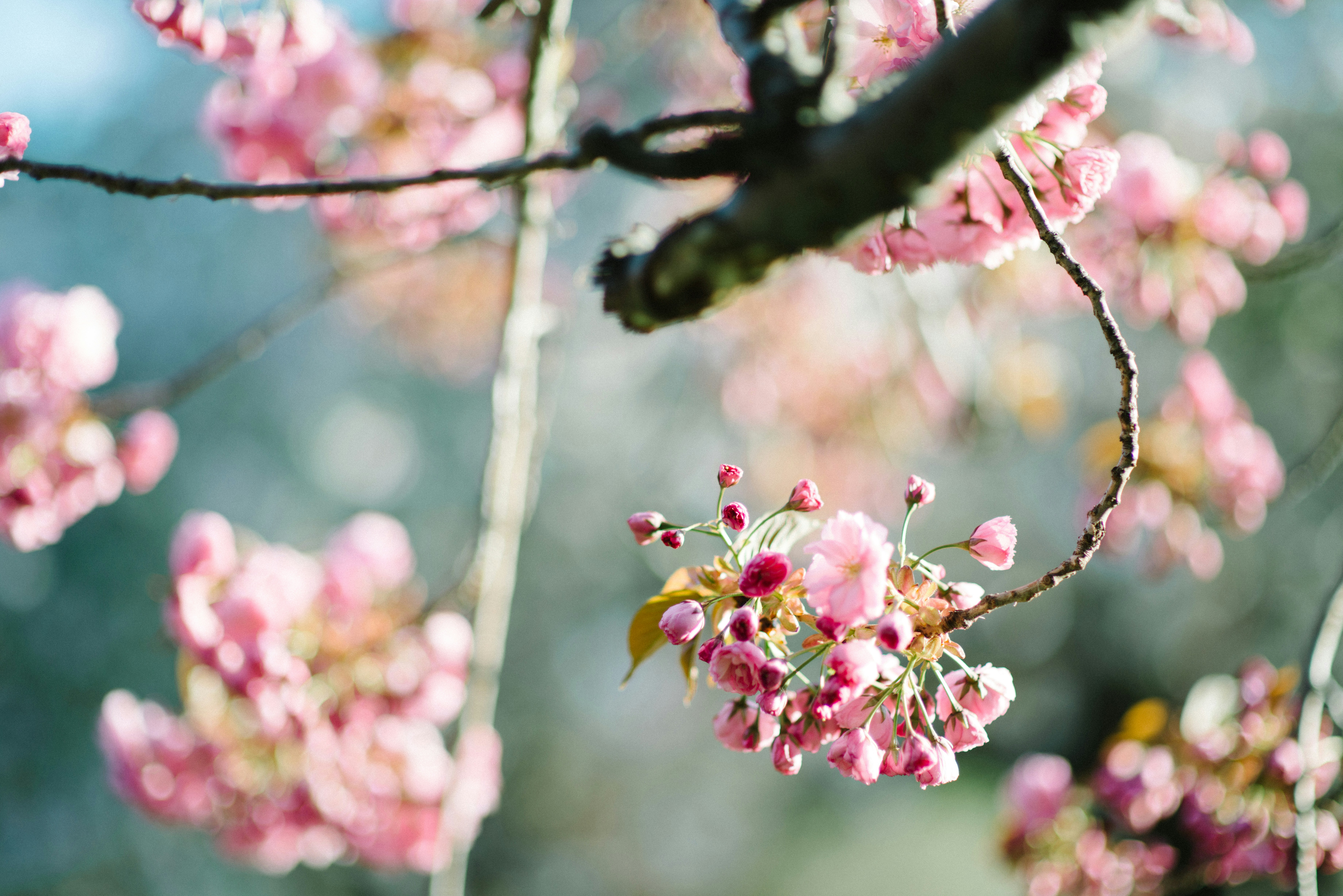 花朵,树枝,花瓣,花瓣,阳光,粉色,花朵,树木,森林,林地,花园,户外,大自然,樱桃花,樱花