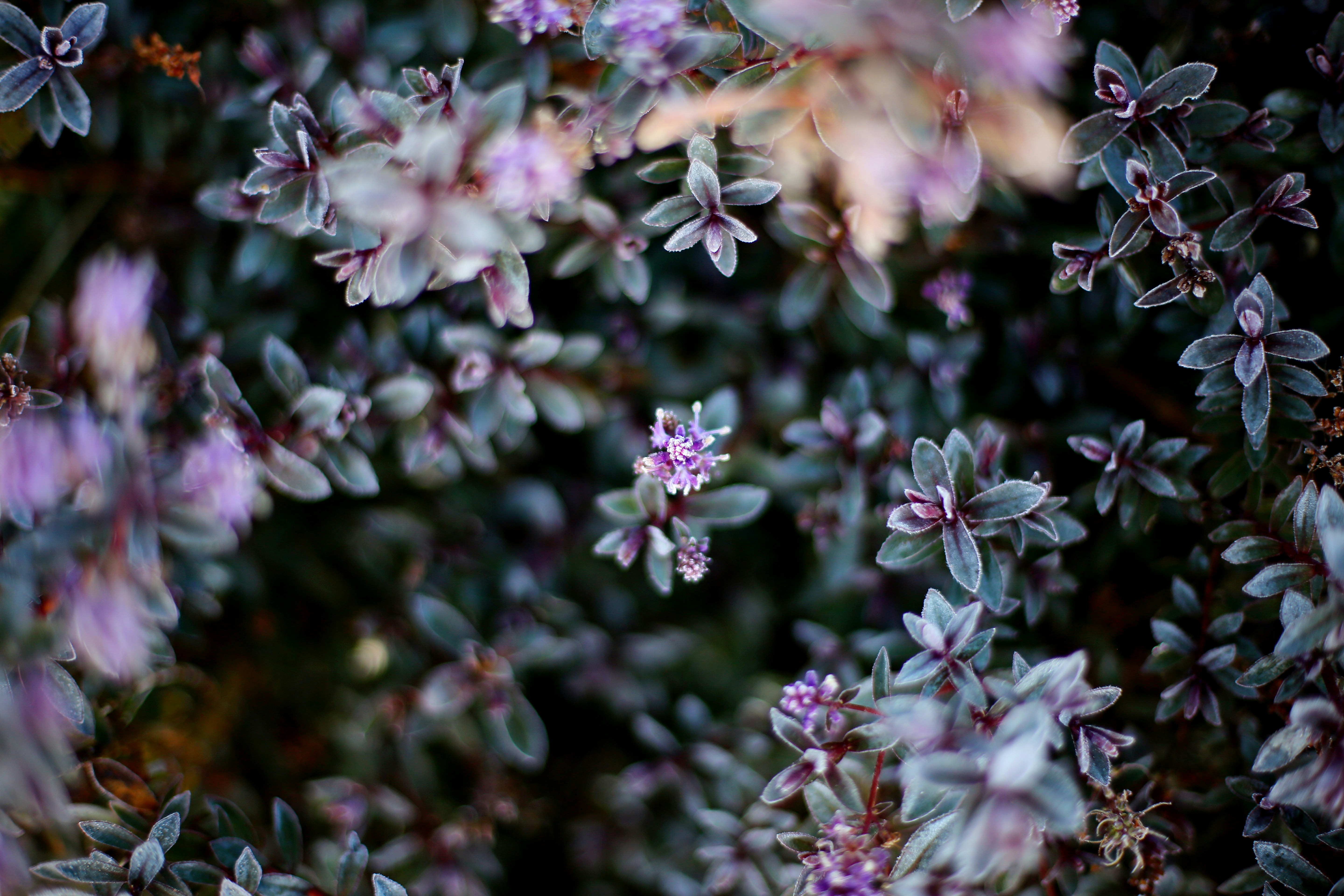花卉,植物,绿色,紫色,模糊,宏,多彩,细节,特写,花卉,冬季花,霜,紫色花,焦点,肉质的