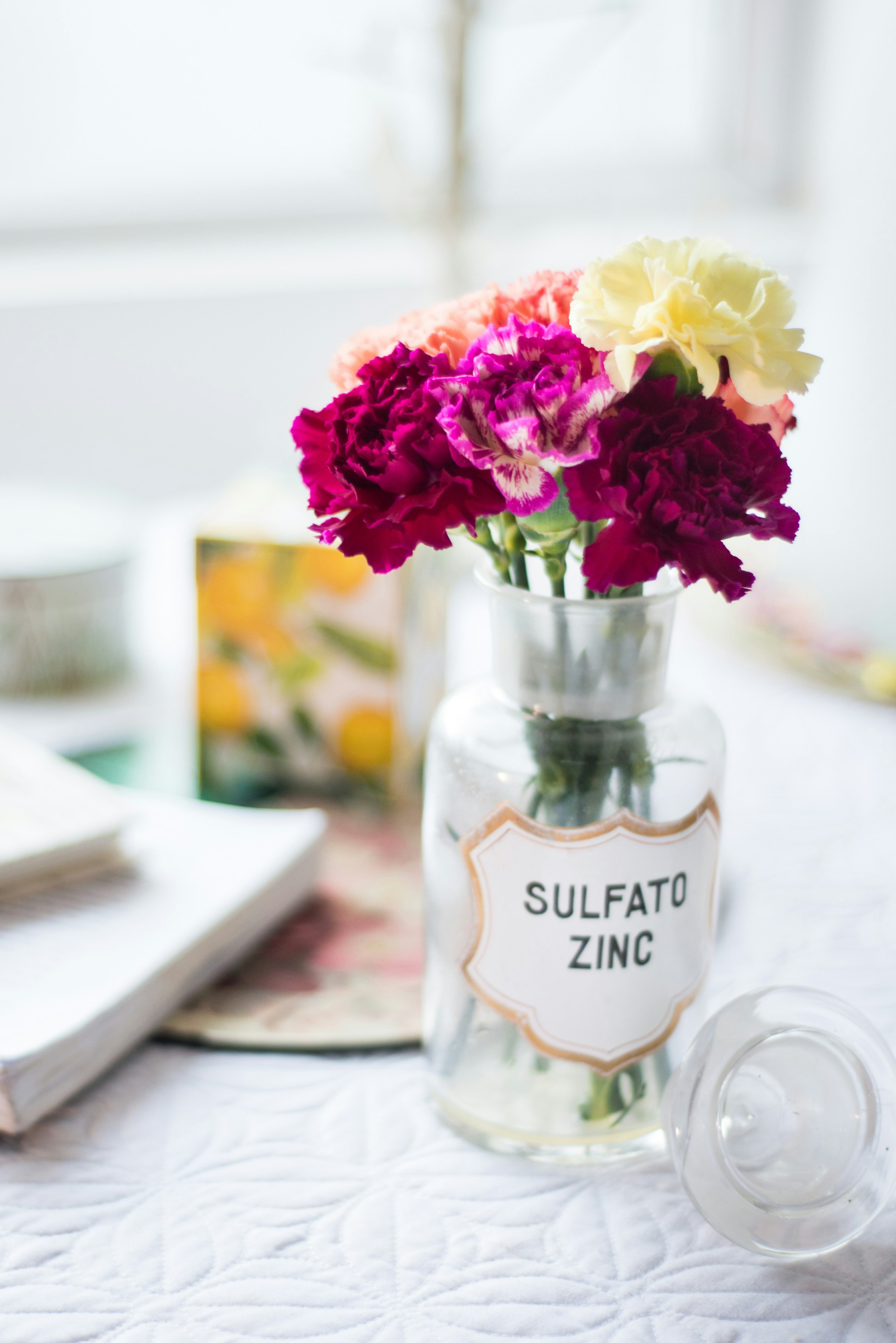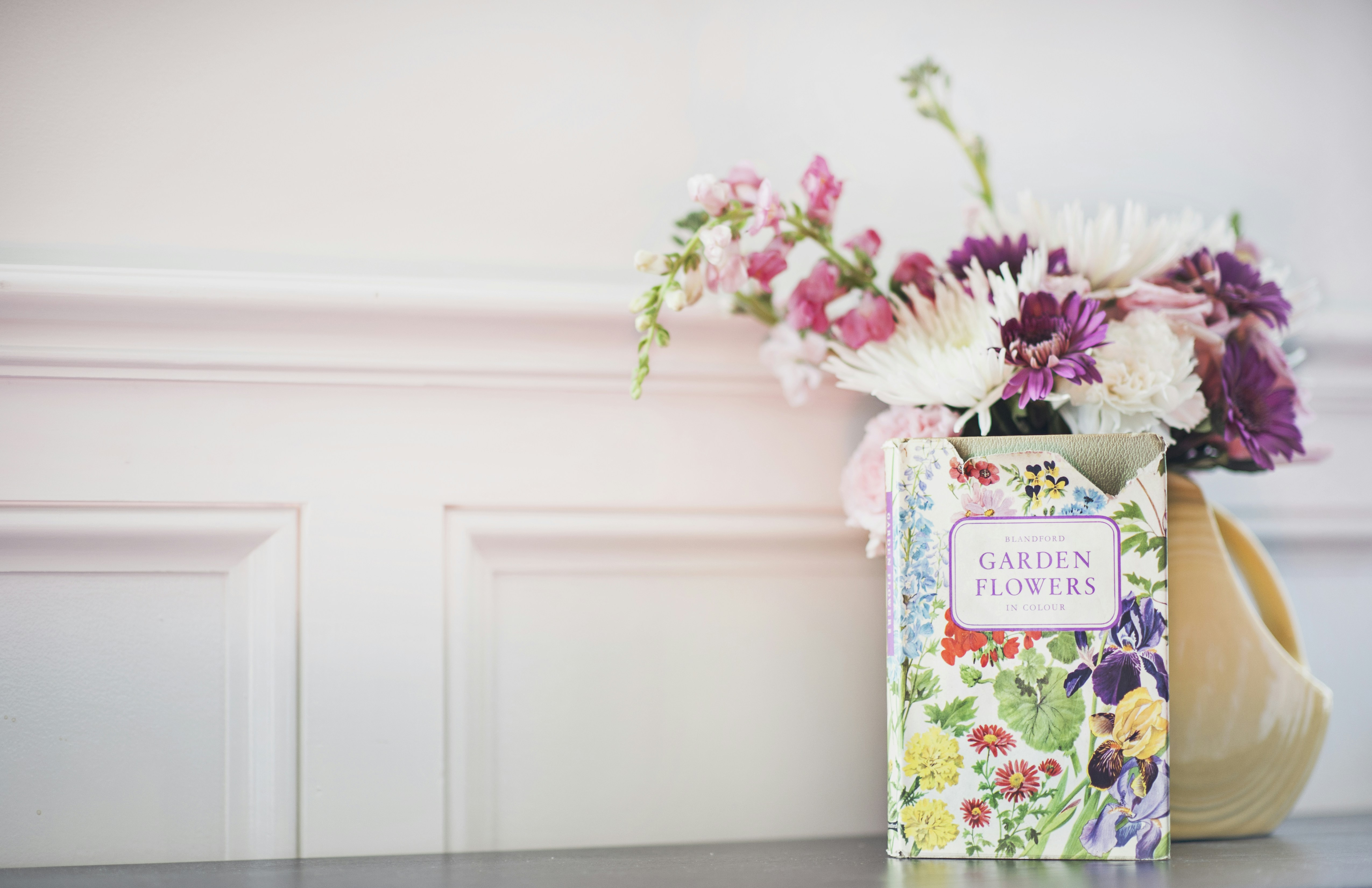 房子、花、墙、书、盒、花、花瓶、水壶、花束、陈列、粉红色、非洲菊、白色、金鱼草、康乃馨、玫瑰、插图、布兰福德、花园、植物学