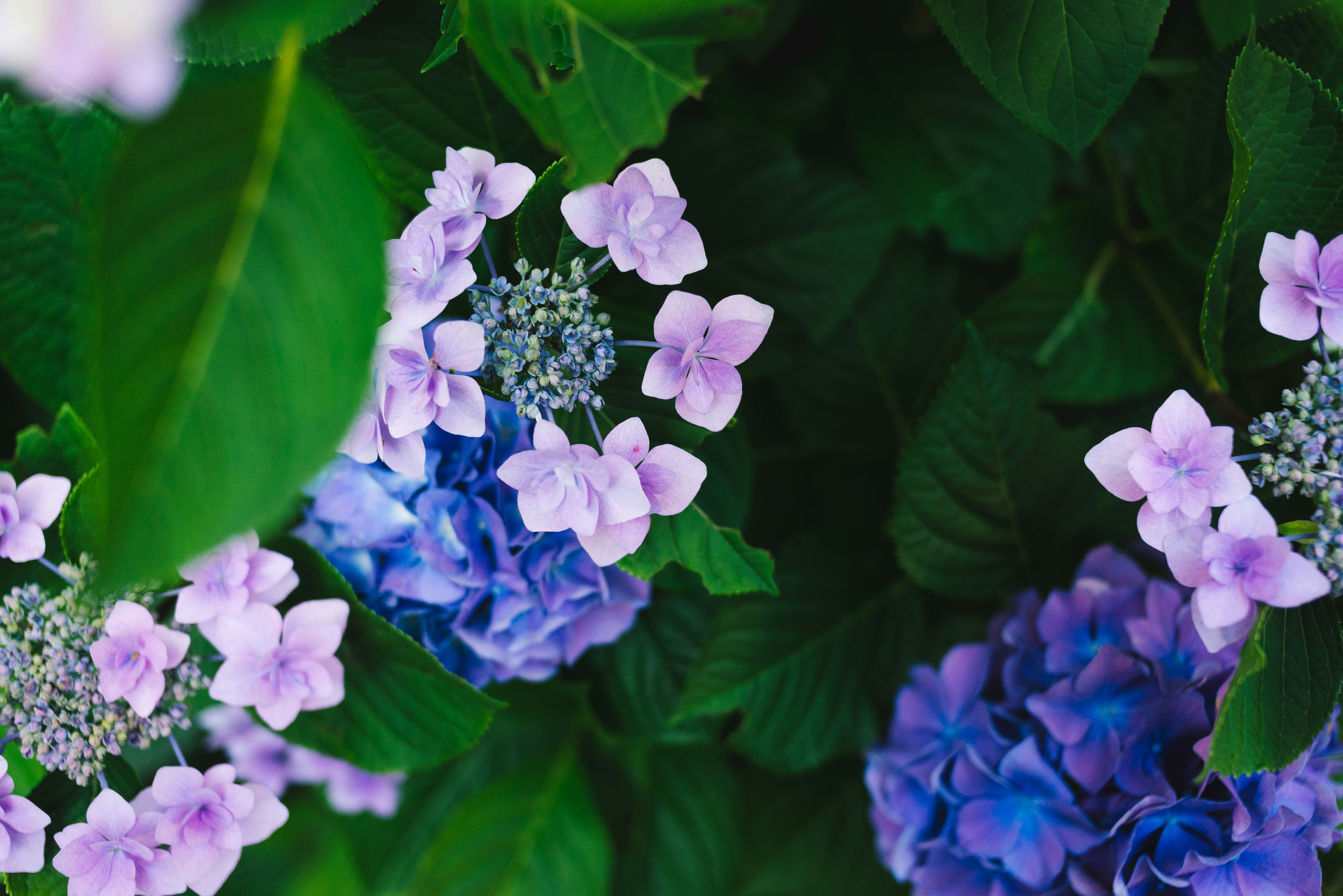 绿色,蓝色,紫色,绣球,树叶,植物,自然,植物,花卉,绿色植物,壁纸
