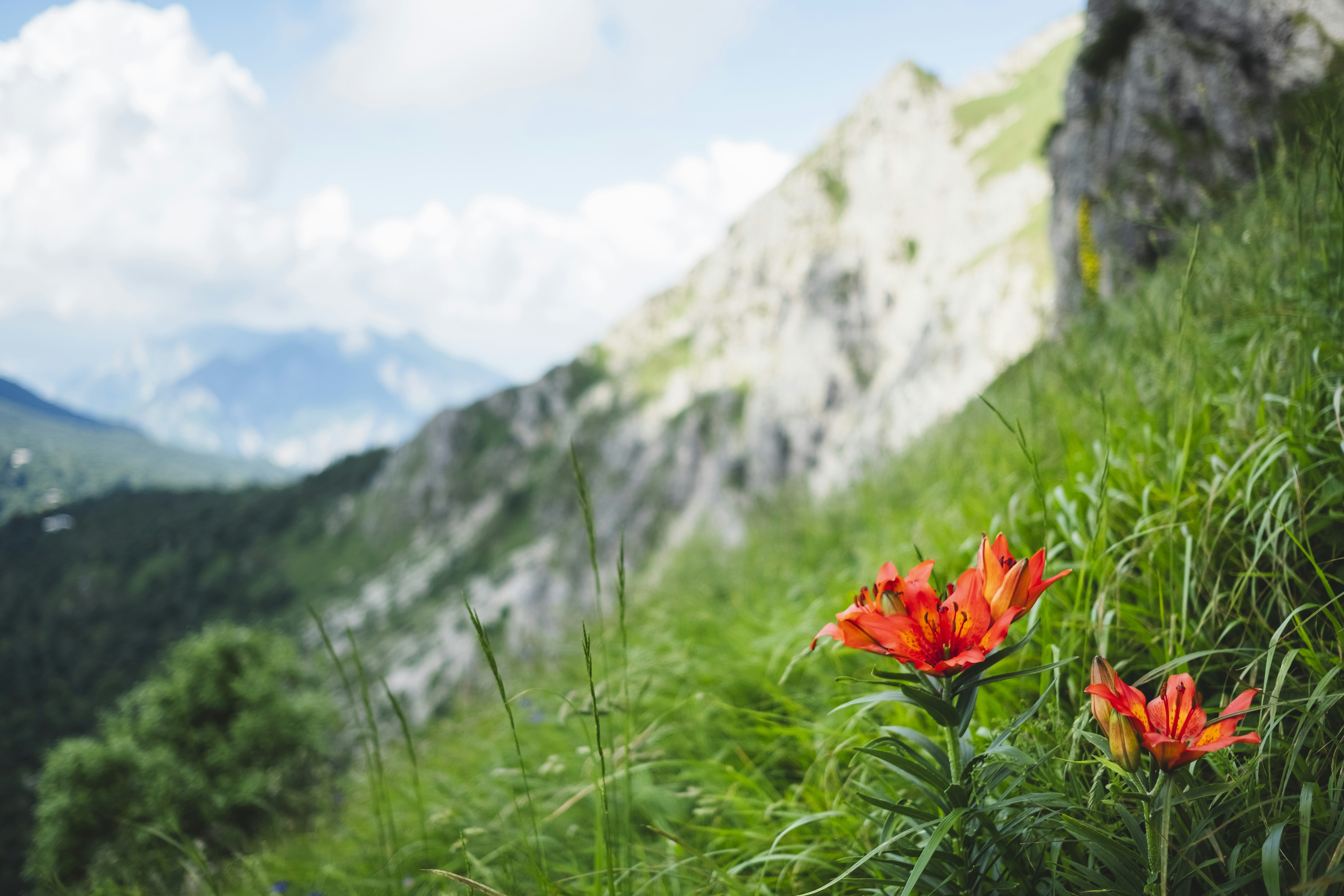 山、绿、草、仿空间、草地、自然、绿化、山坡、丘陵、乡村、花卉、百合、植物、徒步旅行者、无人、百合、球茎百合