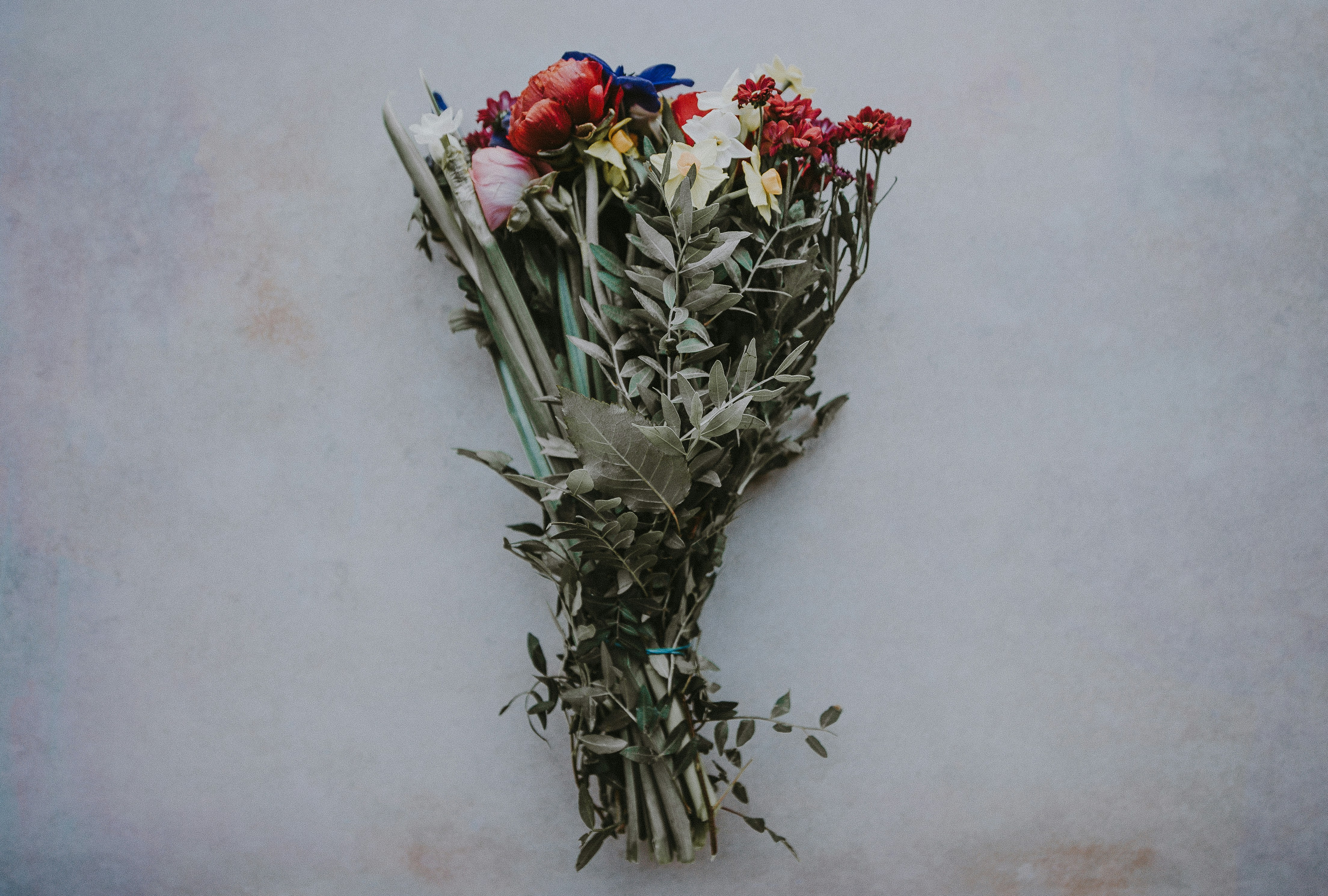 花,花,束,花束,绿色,叶,叶,红色,蓝色,背景,混凝土,白色,背景,花瓣