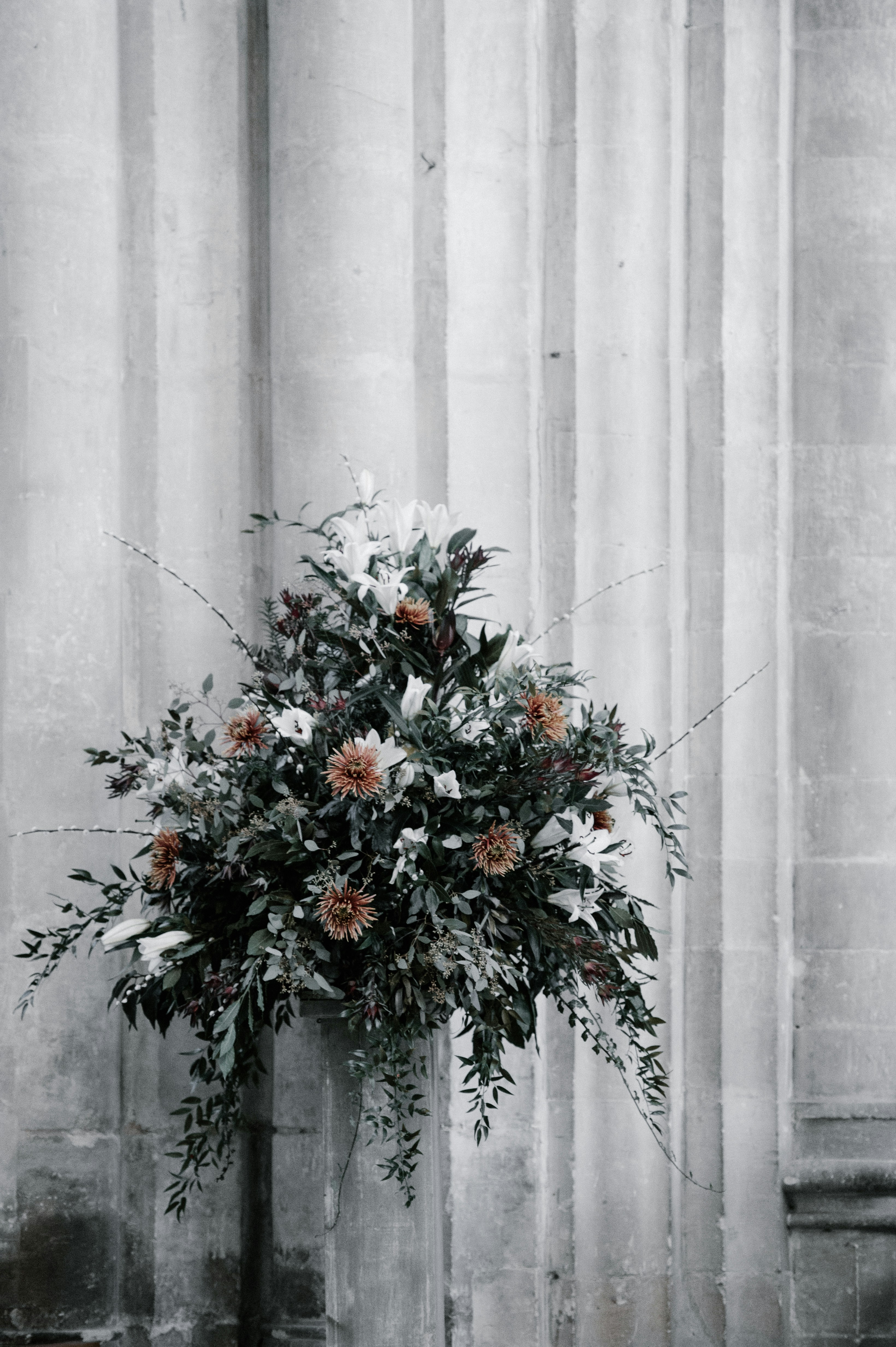 植物,花卉,花束,簇,树叶,墙壁,混凝土,石头