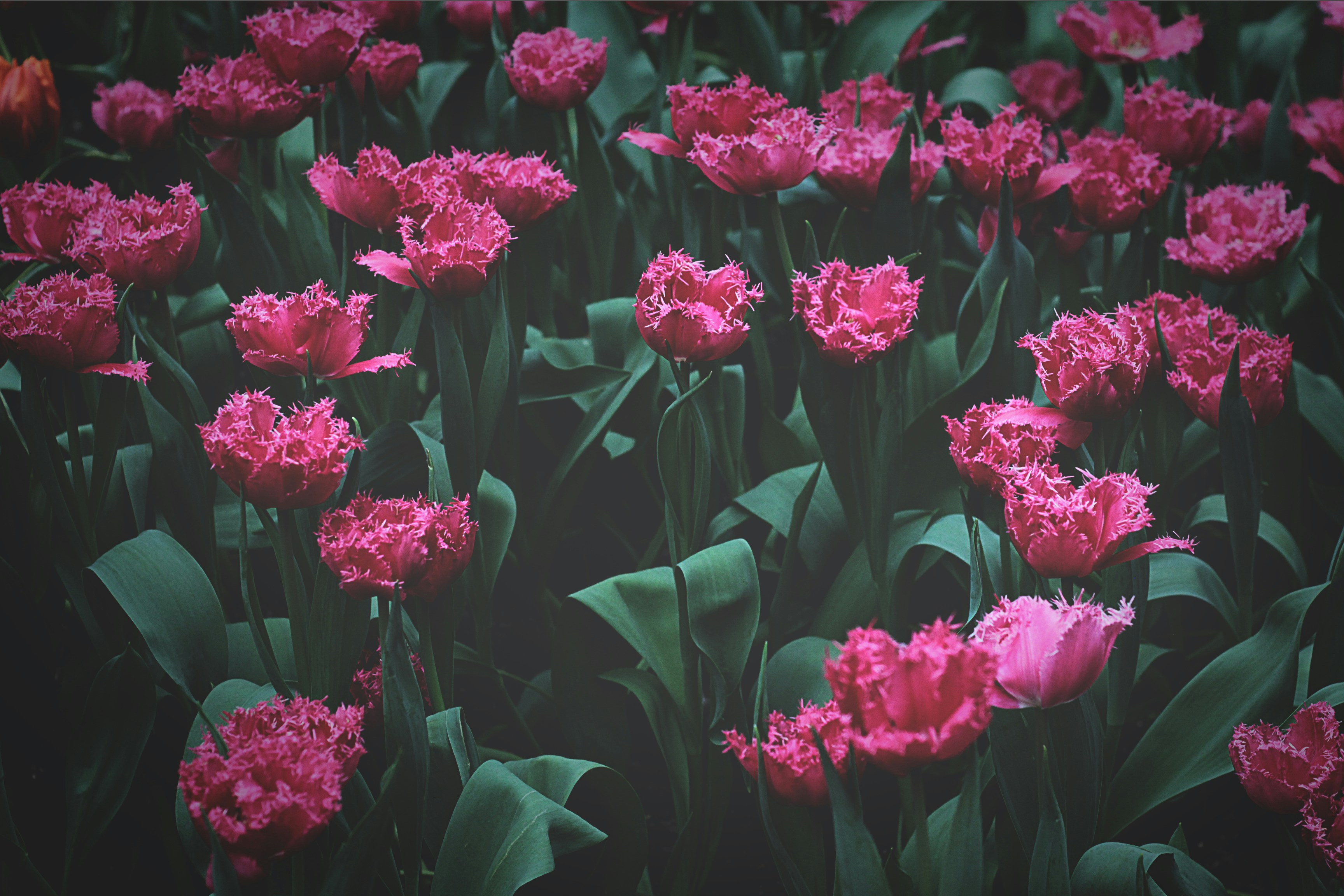 郁金香、花、花束、树叶、茎、植物、花瓣、束、自然、汉诺威、德、红、蓝天