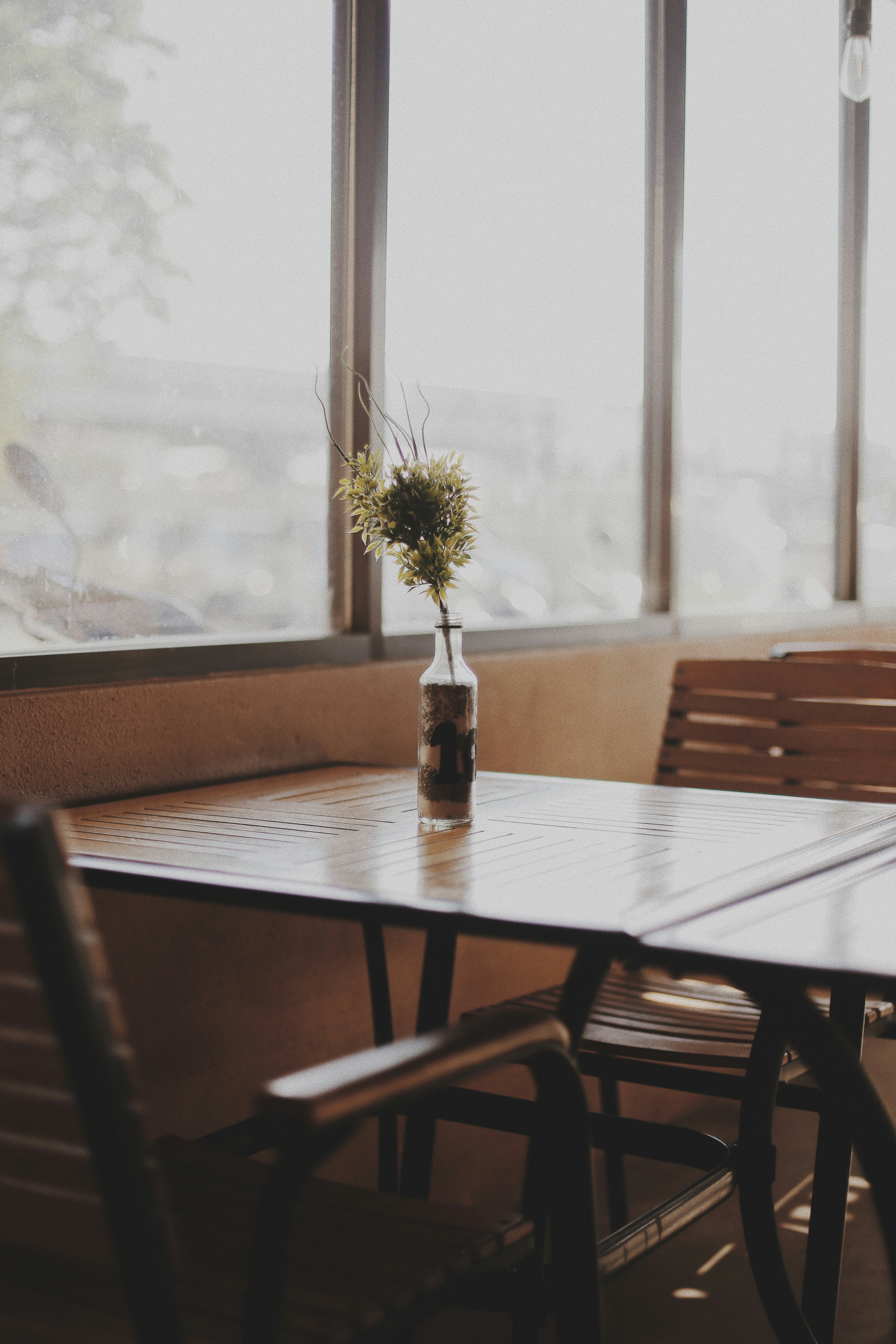桌子,装饰,植物,花卉,玻璃花瓶,椅子,咖啡馆,窗户,室内,设计,吃,用餐,餐厅,经典,复古,古典,咖啡,极简主义,石头,沙子