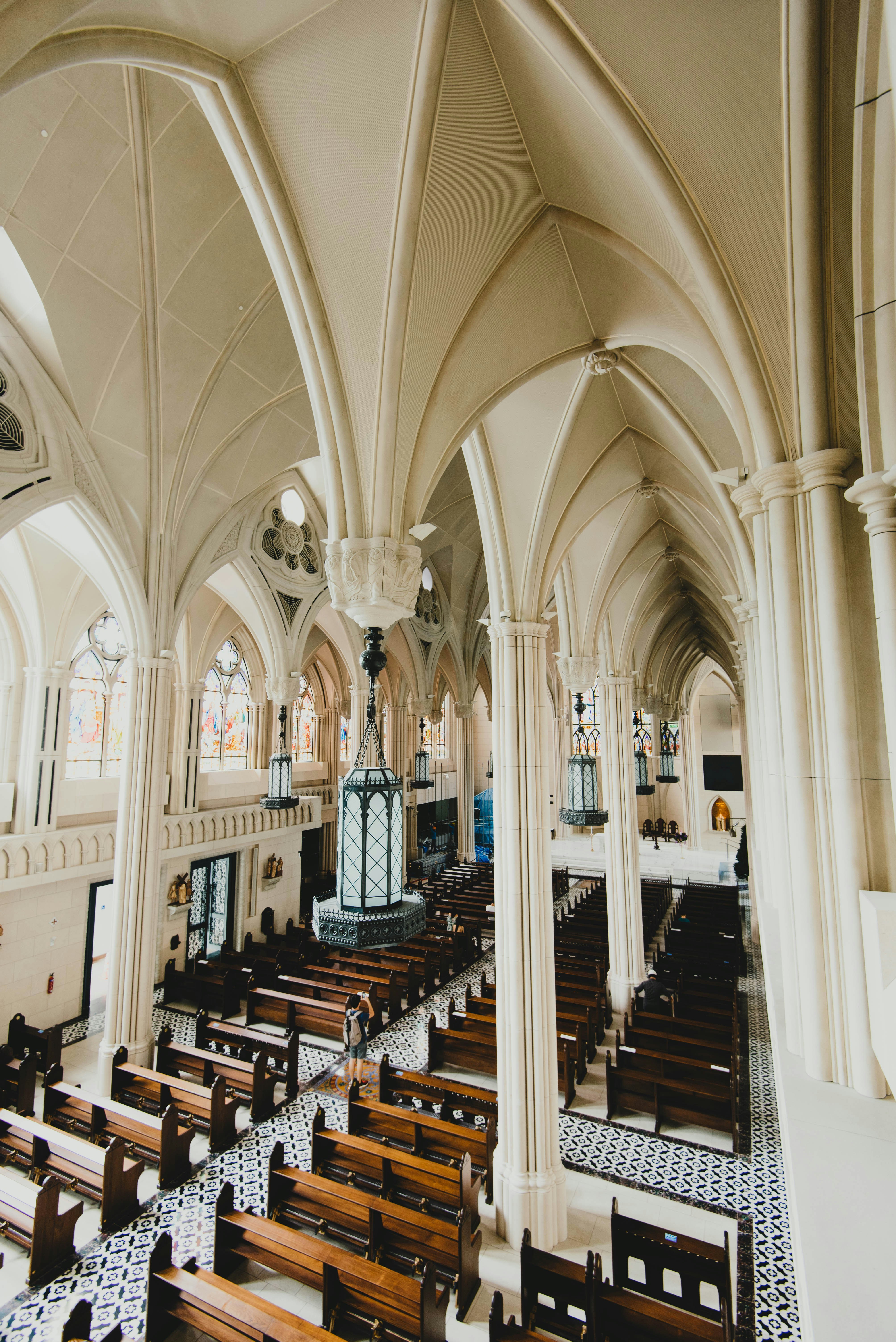 教堂、窗户、拱门、过道、座位、皮尤、修道院、教堂、宗教、祈祷、透视、室内设计、历史、信仰、UHD、8K、4K、建筑、美丽