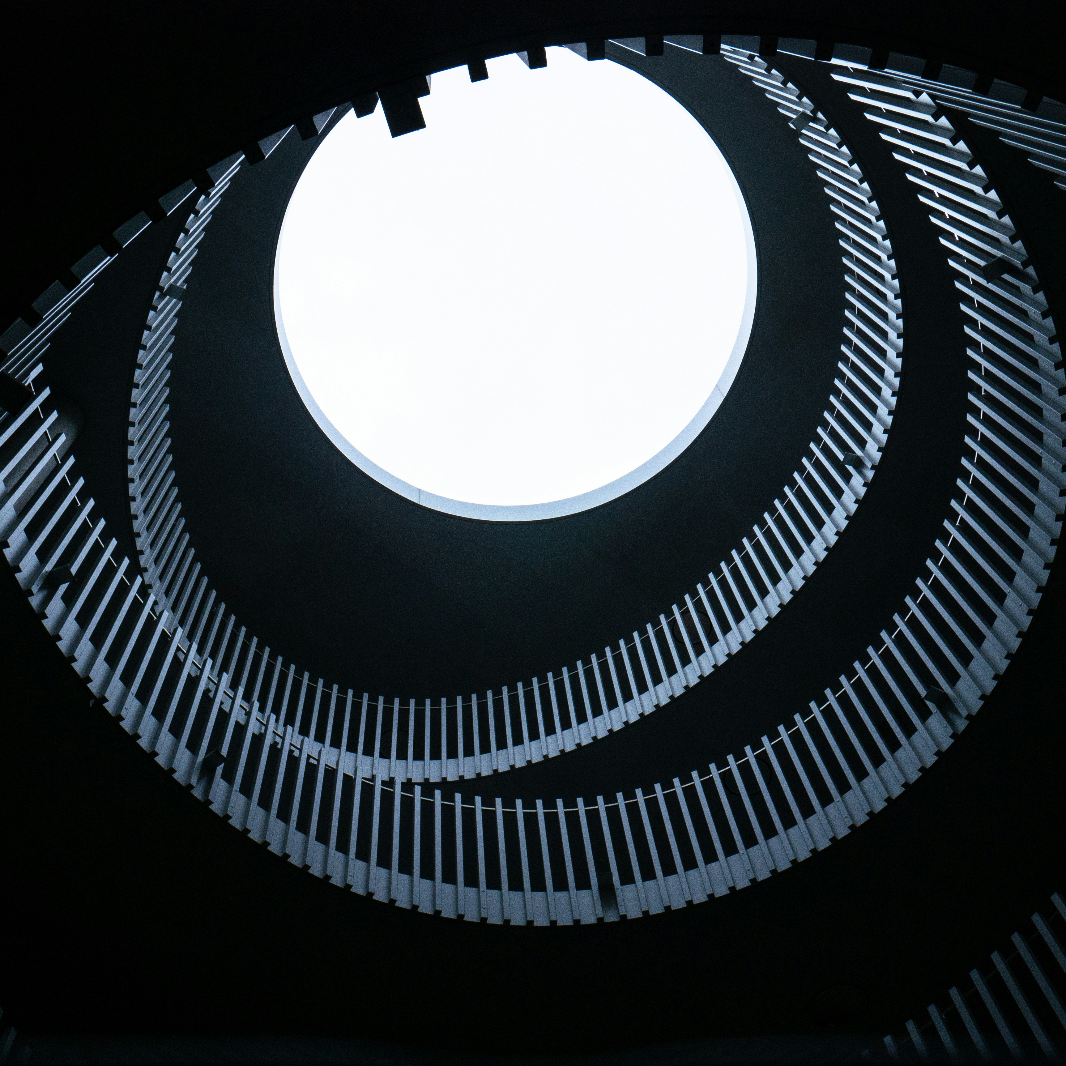 建筑、室内、天空光、极简主义、灯光、城市、仰视、圆形、黑暗、窗户、现代、设计、格恩、日内瓦、瑞士、光明之光