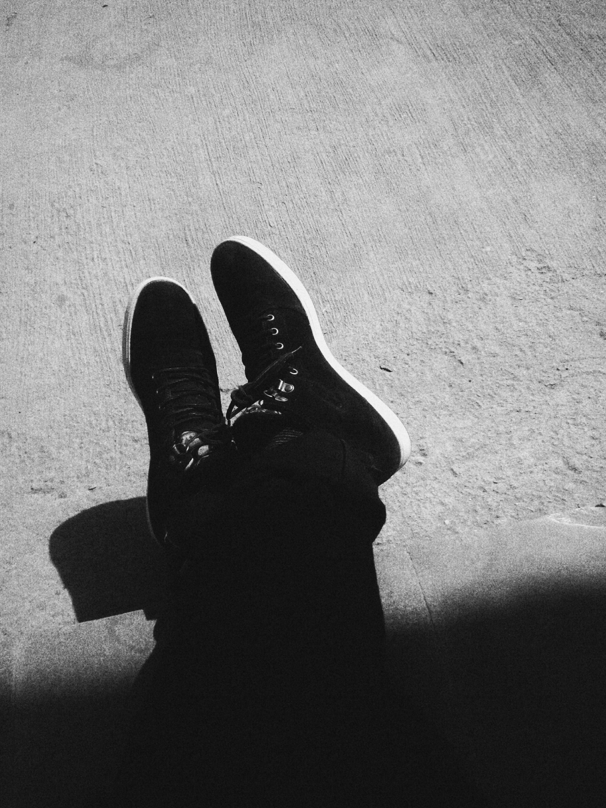 shoes,black shoes,sneakers,trainers,nike,looking down,ocean,swell,foam,beach,black and white,b&w,alf williamsen