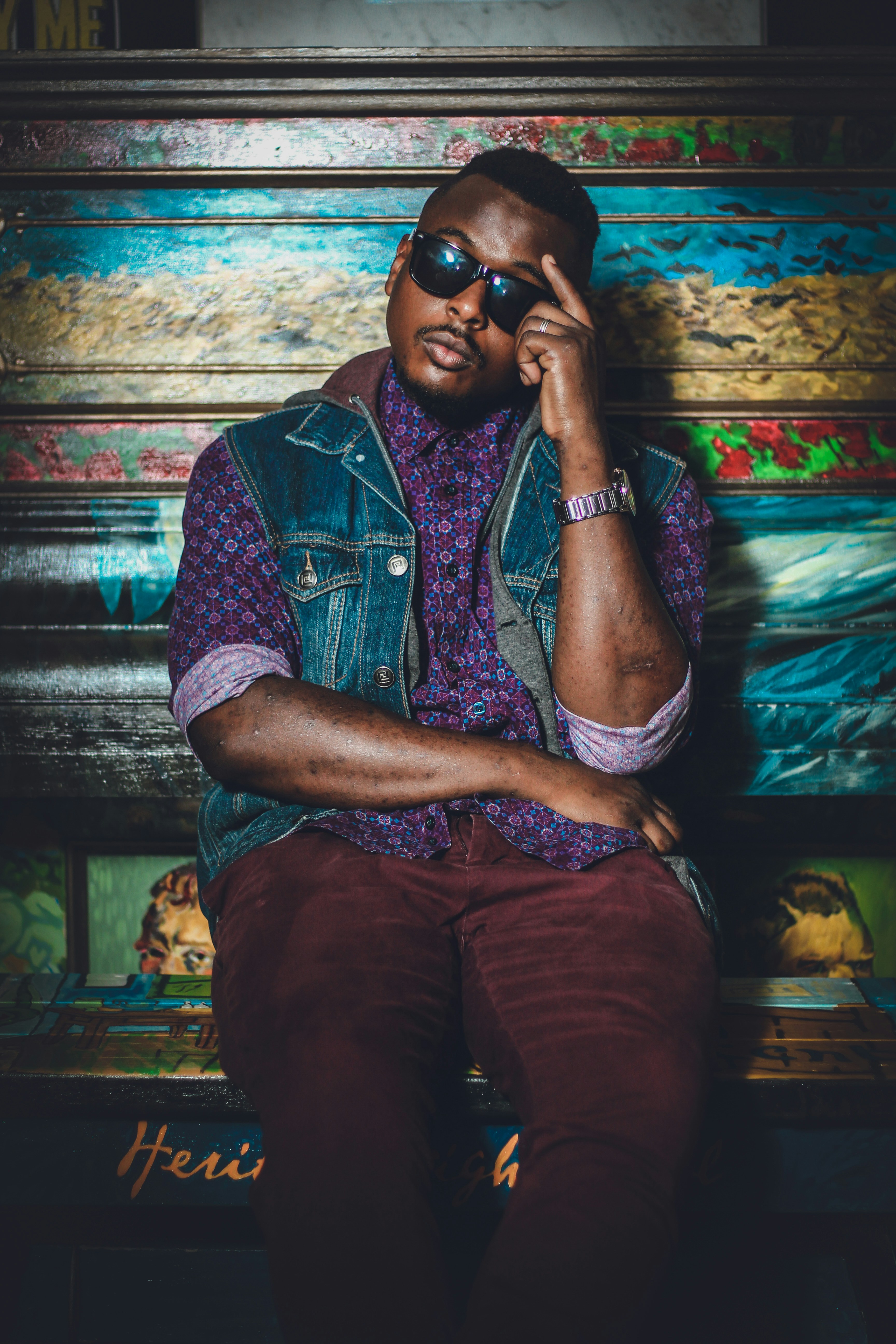 非洲裔美国人,男性,男性,个人简介,肖像,座位,眼睛接触,街头服装,街道,街景