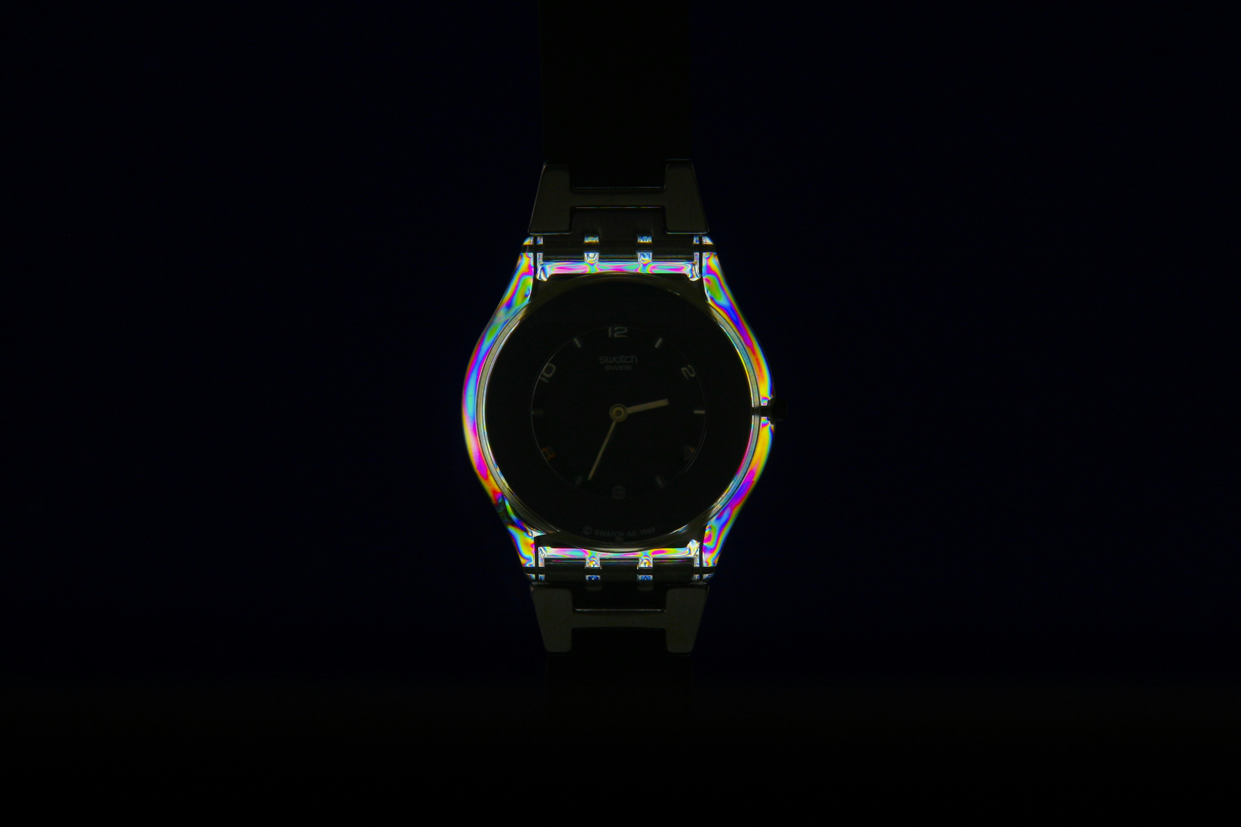 最小,黑色,产品,彩虹,颜色,颜色,偏振光,偏光板,时间,时钟,计时器,黑色背景,黑色,黑暗