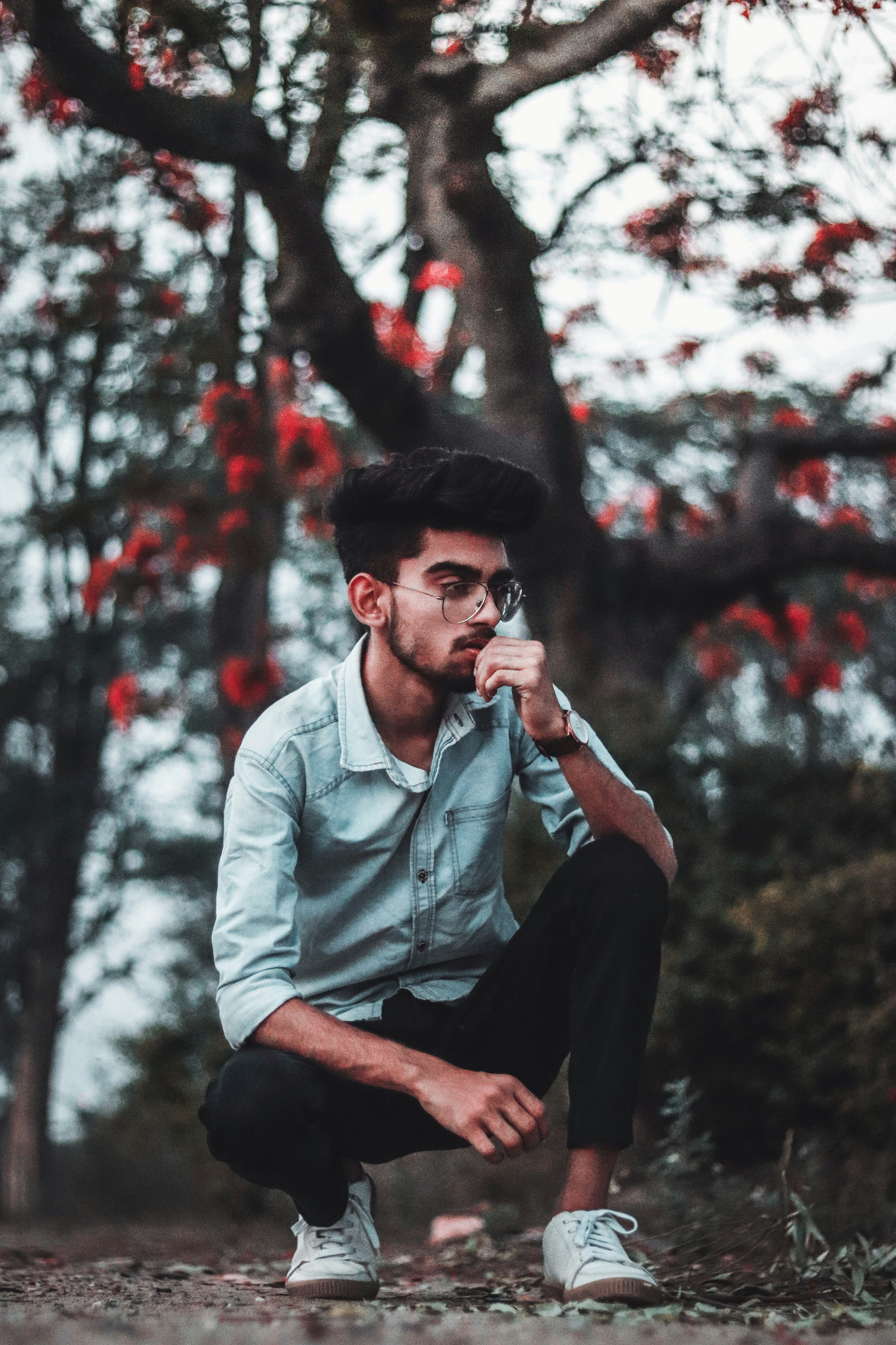 男人,男人,肖像,森林,短发,模糊,红色,眼镜,蓝色,地板,发型,湖泊,河流,沙滩,地面,男孩的姿势,红色和蓝色,颜色,平坦,极小