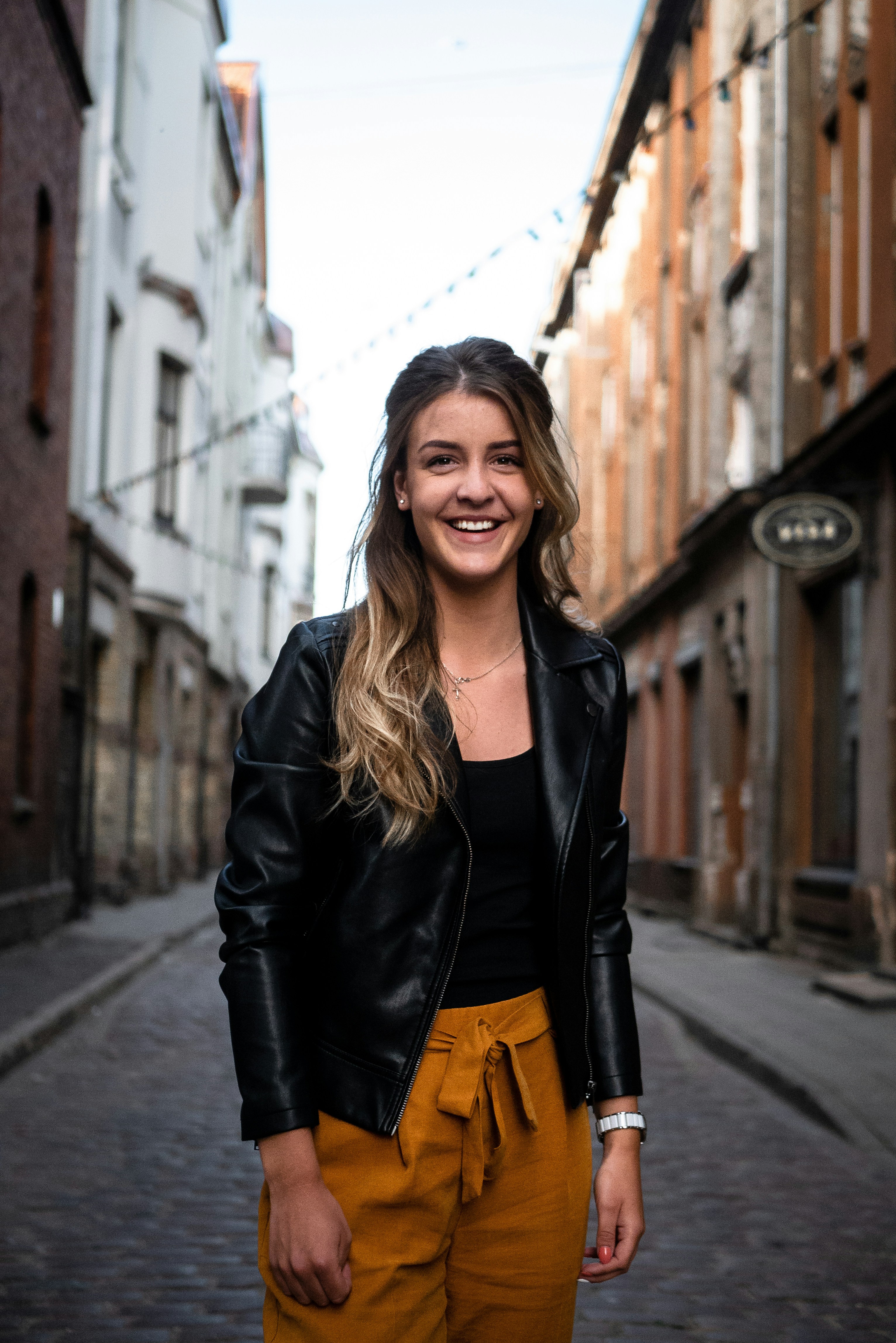女人,女人,肖像,城市,建筑,街道,白人,皮革,深褐色,短发,模糊,微笑,快乐,松下,混色相机,混色相机,混色相机,肖像摄影,女孩,街头摄影,街头风格