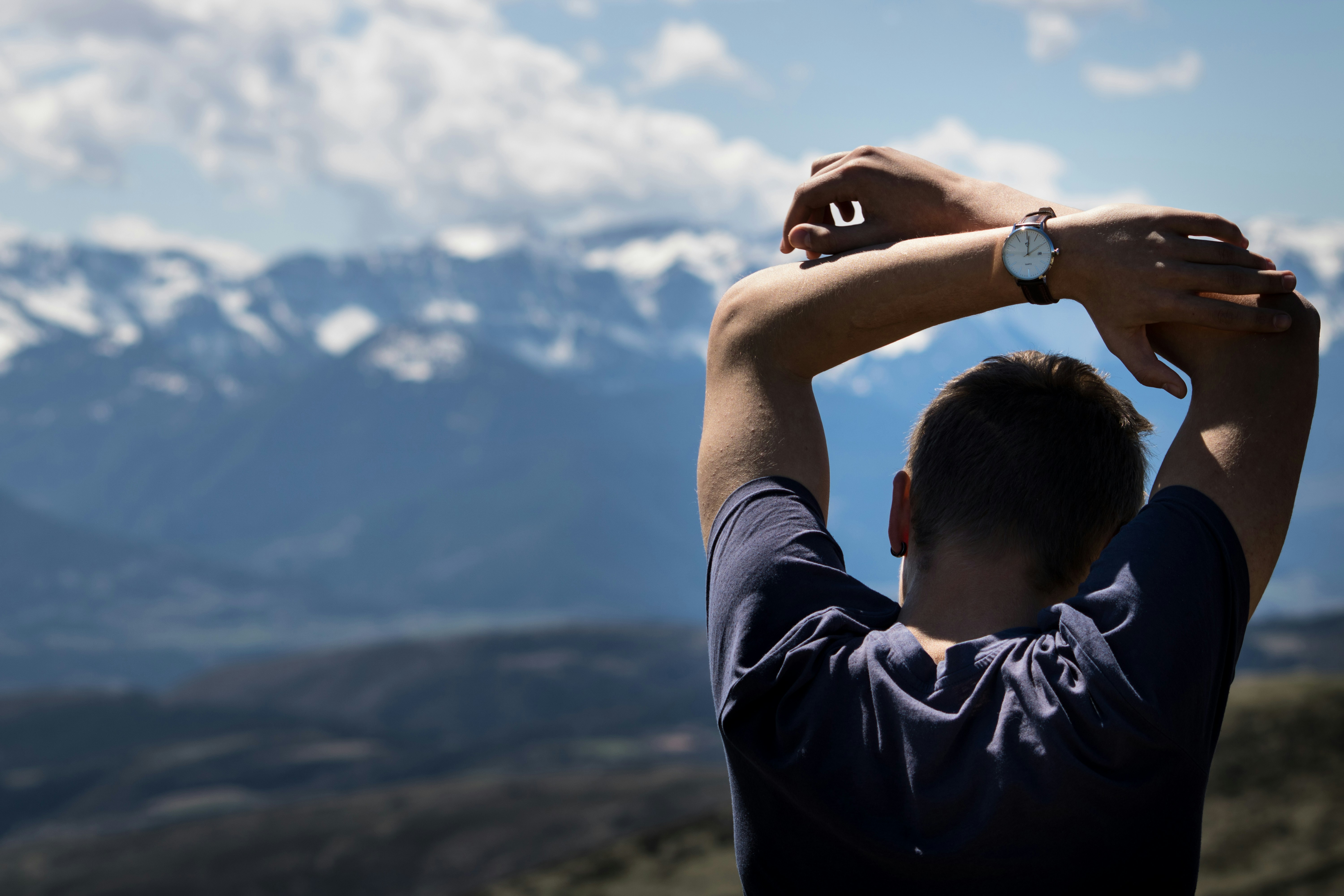 A person with a camera on the seaside wears a t-shirt that says "don't kill my vibe"