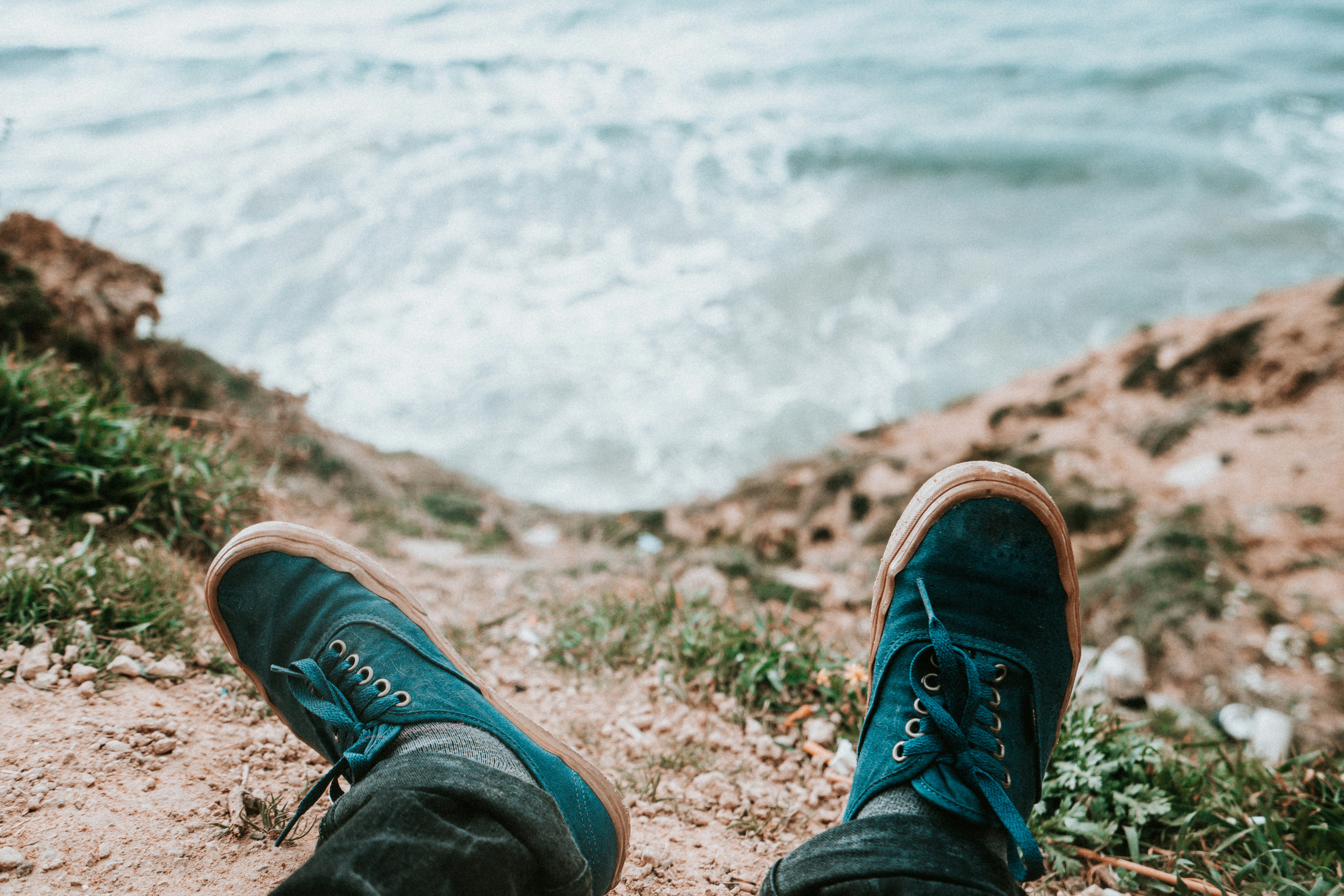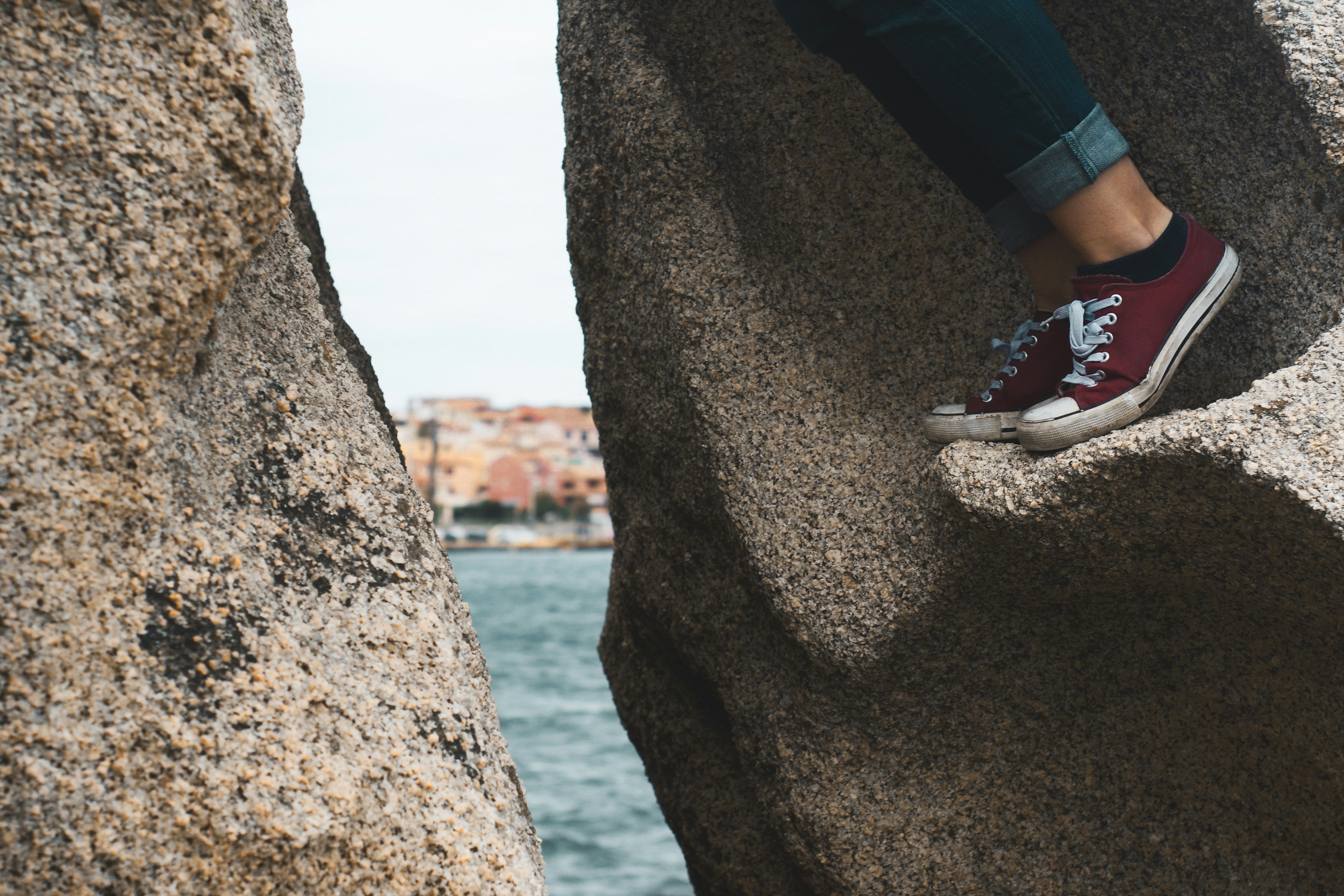 岩石,脚,鞋,腿,海,海洋,水,海岸,运动鞋,攀登,沙丁鱼,脚