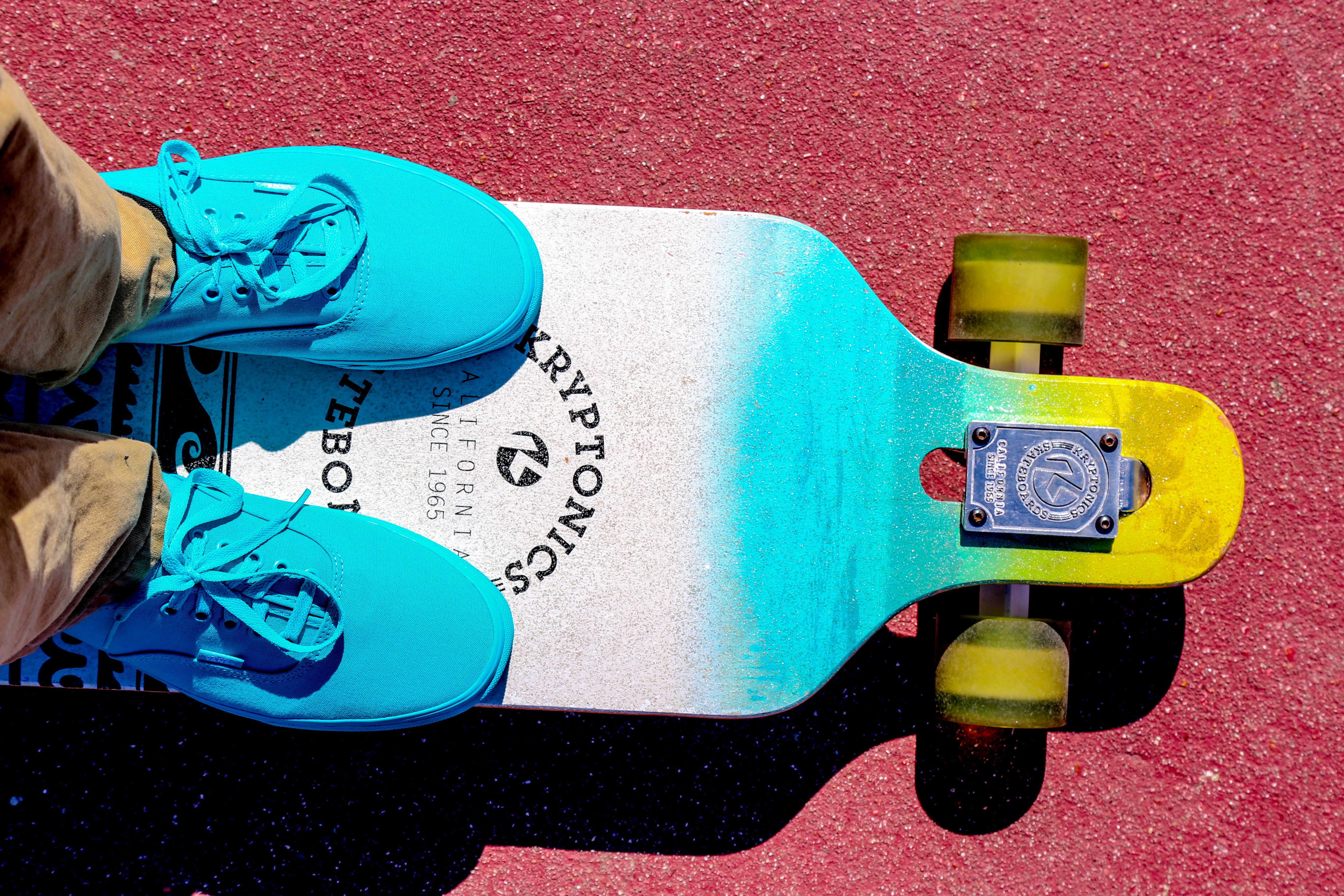 长板,溜冰鞋,鞋子,蓝色,明亮,阳光,阴影,红色,跑道,娱乐,玩耍,游戏,黄色,运动鞋,酷,骑,货车