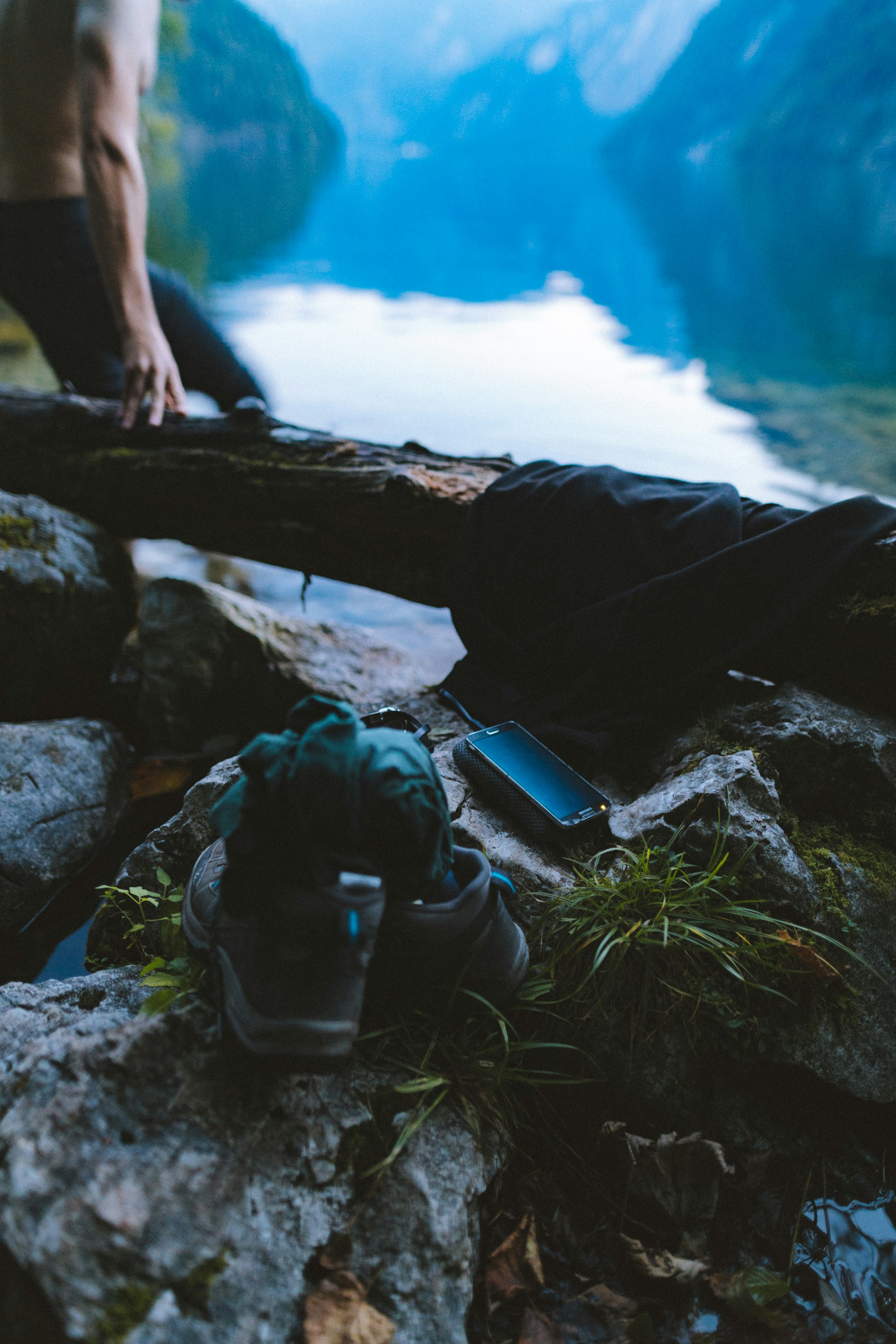 湖,电话,靴子,脱衣,装备,鞋,高山湖,技术,水,人,游泳,森林,技术,冒险,探索,发现,蓝色,三星,冒险,背景