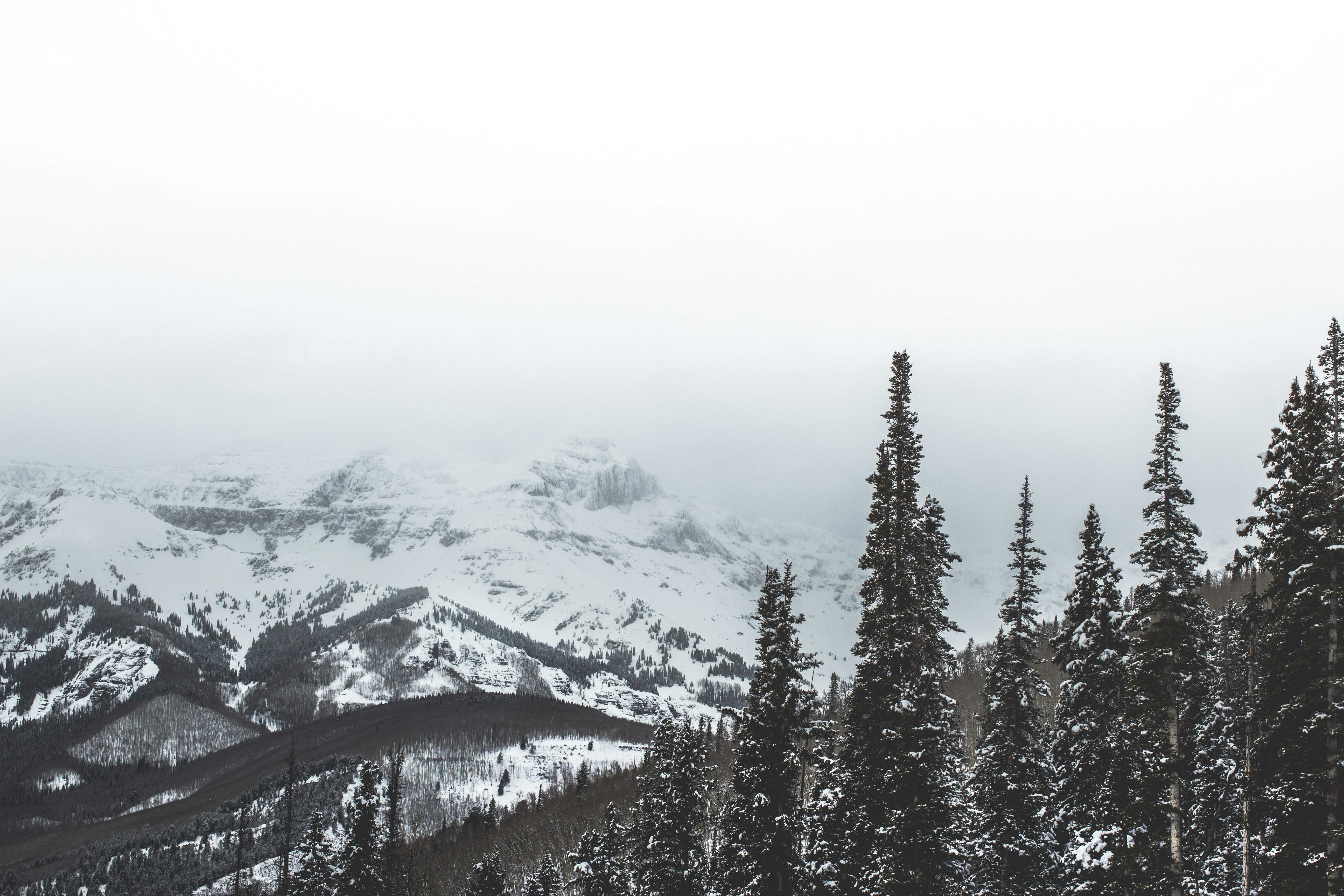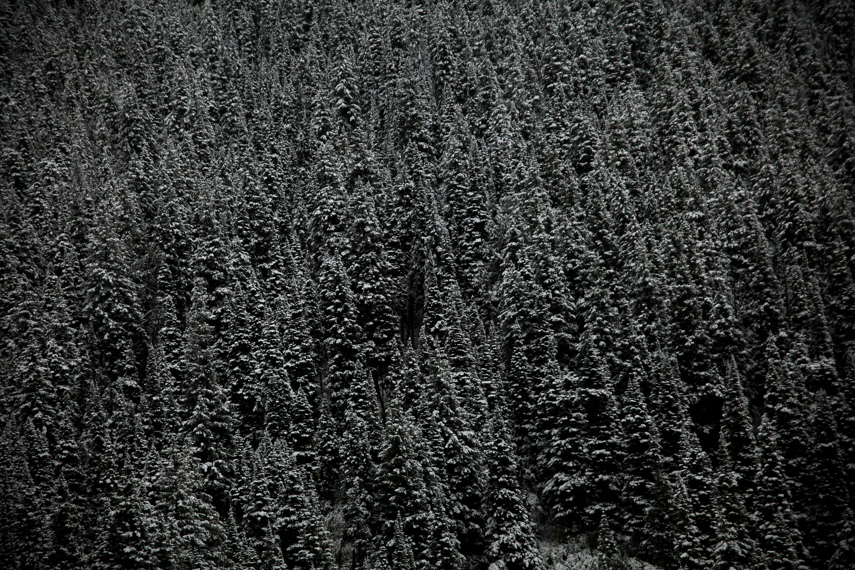 森林、树木、雪、松木、树木、树木、树梢、树梢