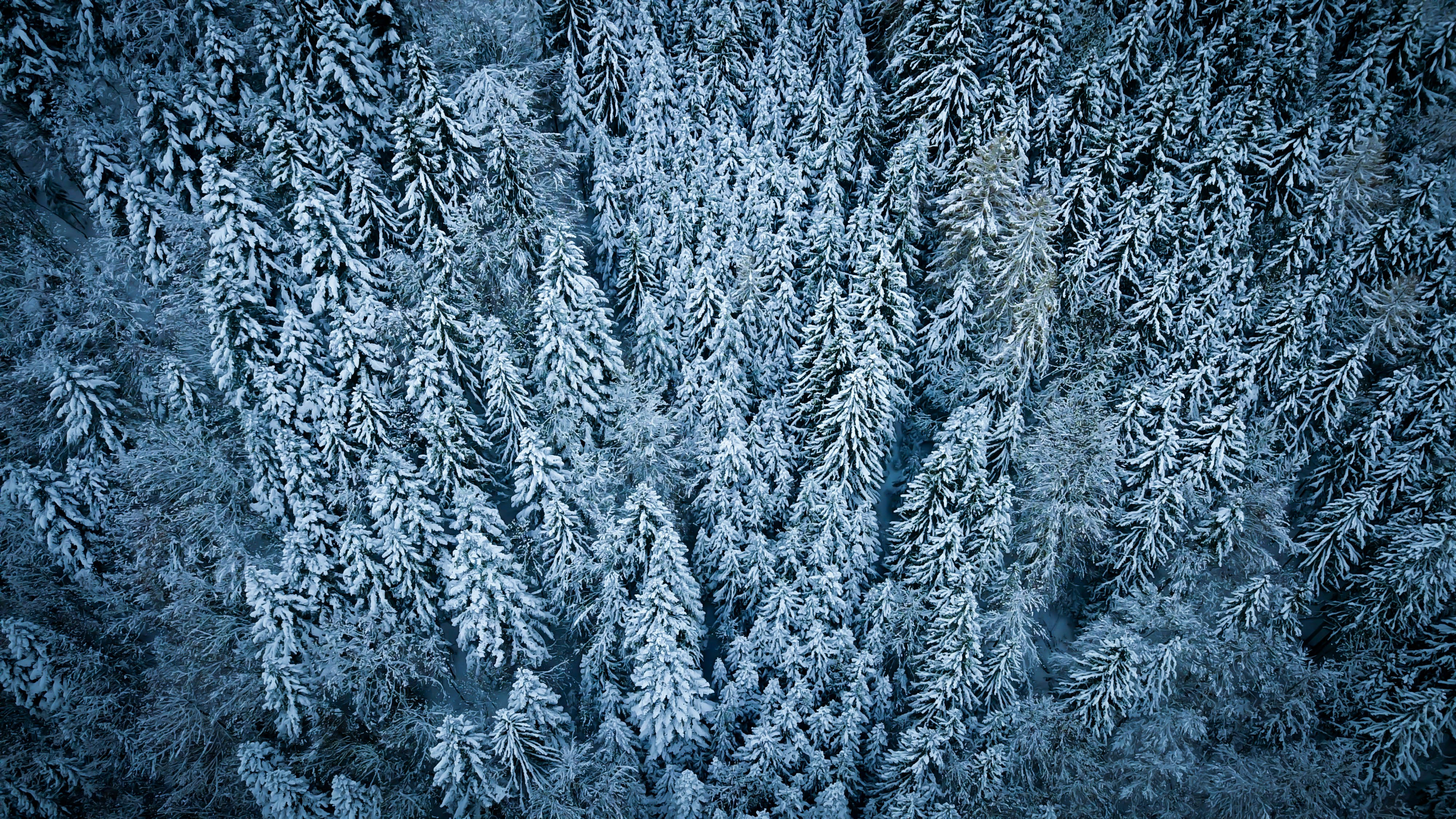 树木,林地,森林,冰冻,冰雪,松树,无人机视图,母猪