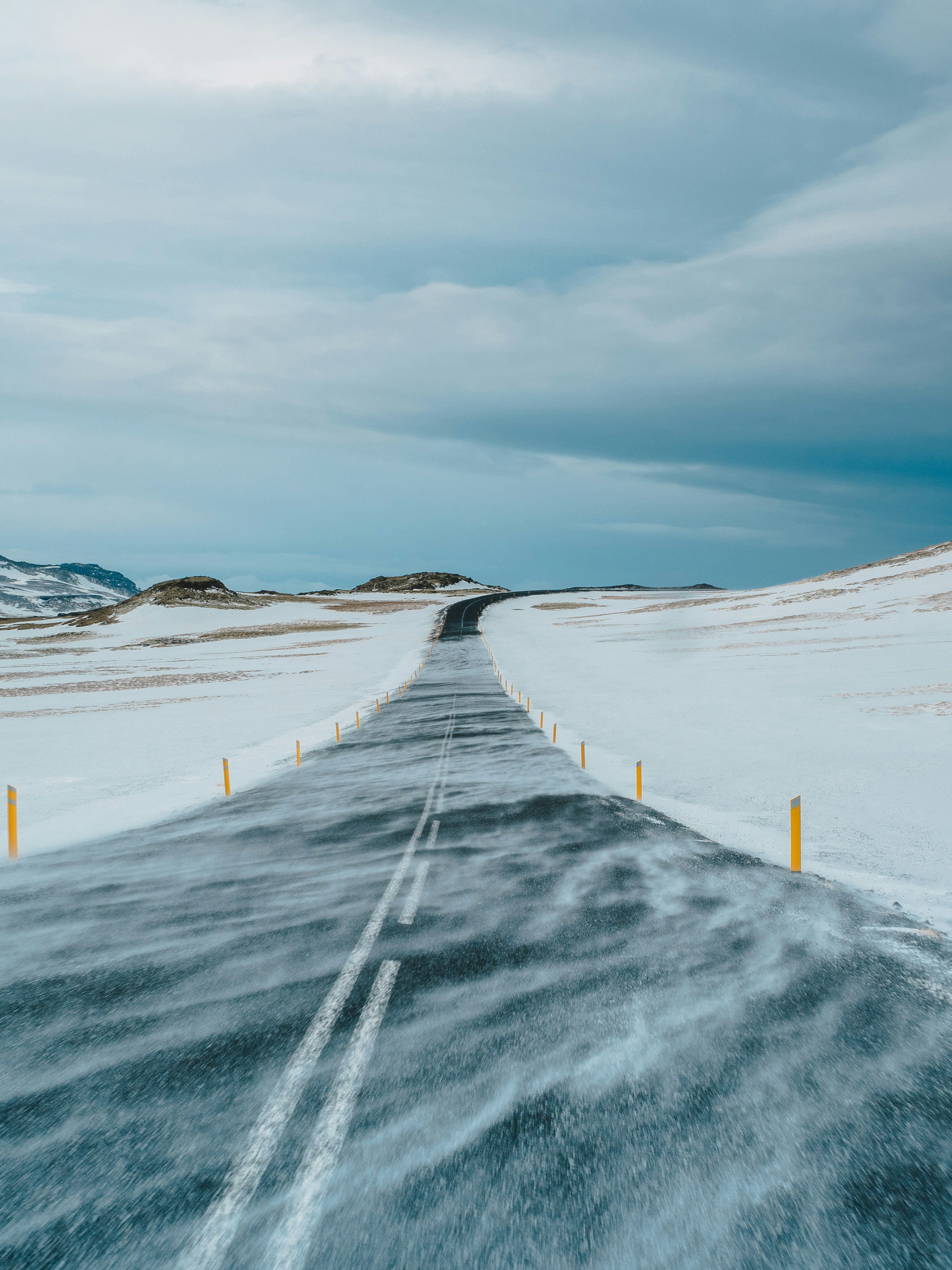 雪、道路、风景、驾车、寒冷、偏远、沙漠、高山、大气、汽车、风景、神奇、风格、喜怒无常、开车、柯克朱菲尔、半岛、冰岛、无处可去