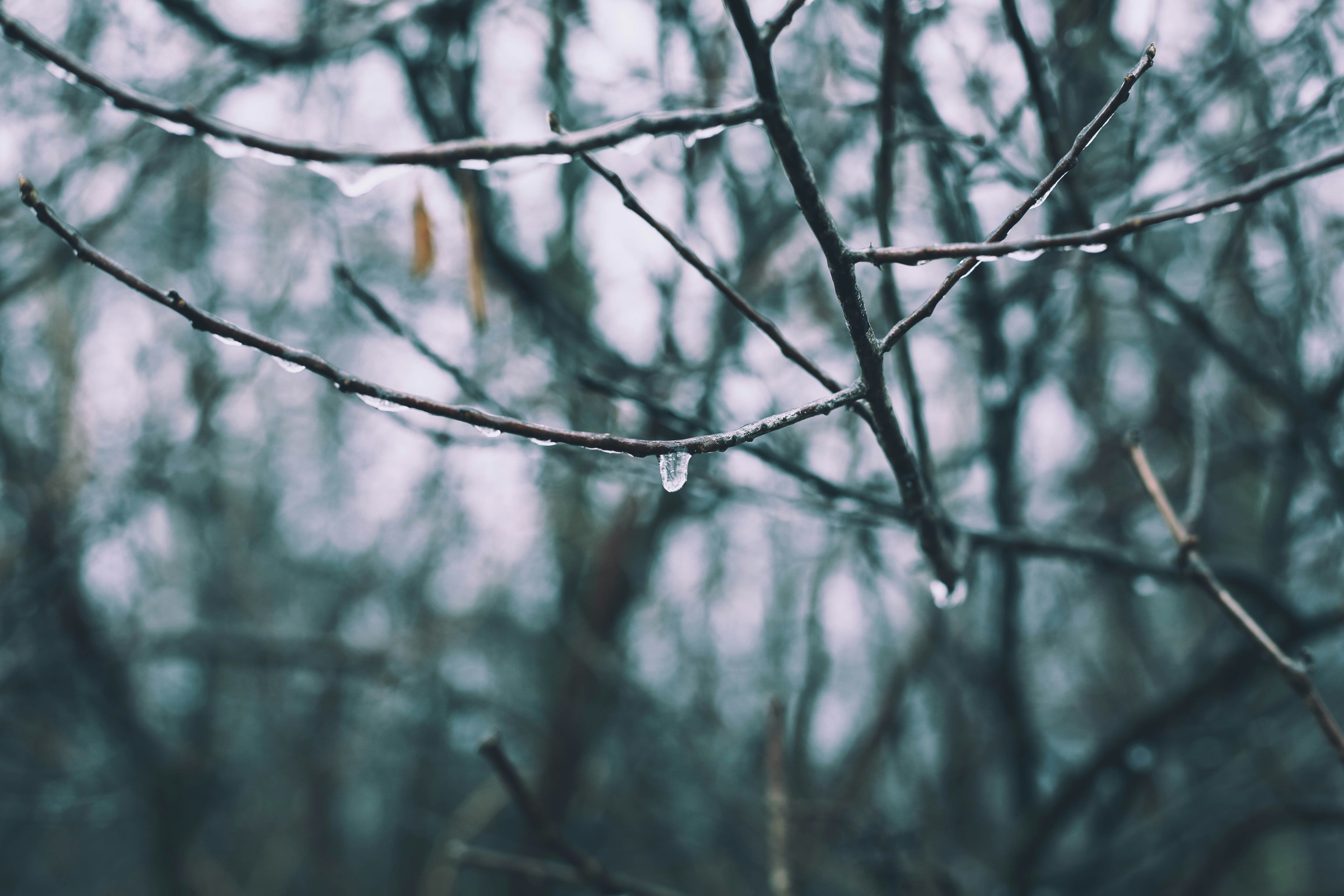 树枝、树、滴、冻、雨、水滴、冷、自然