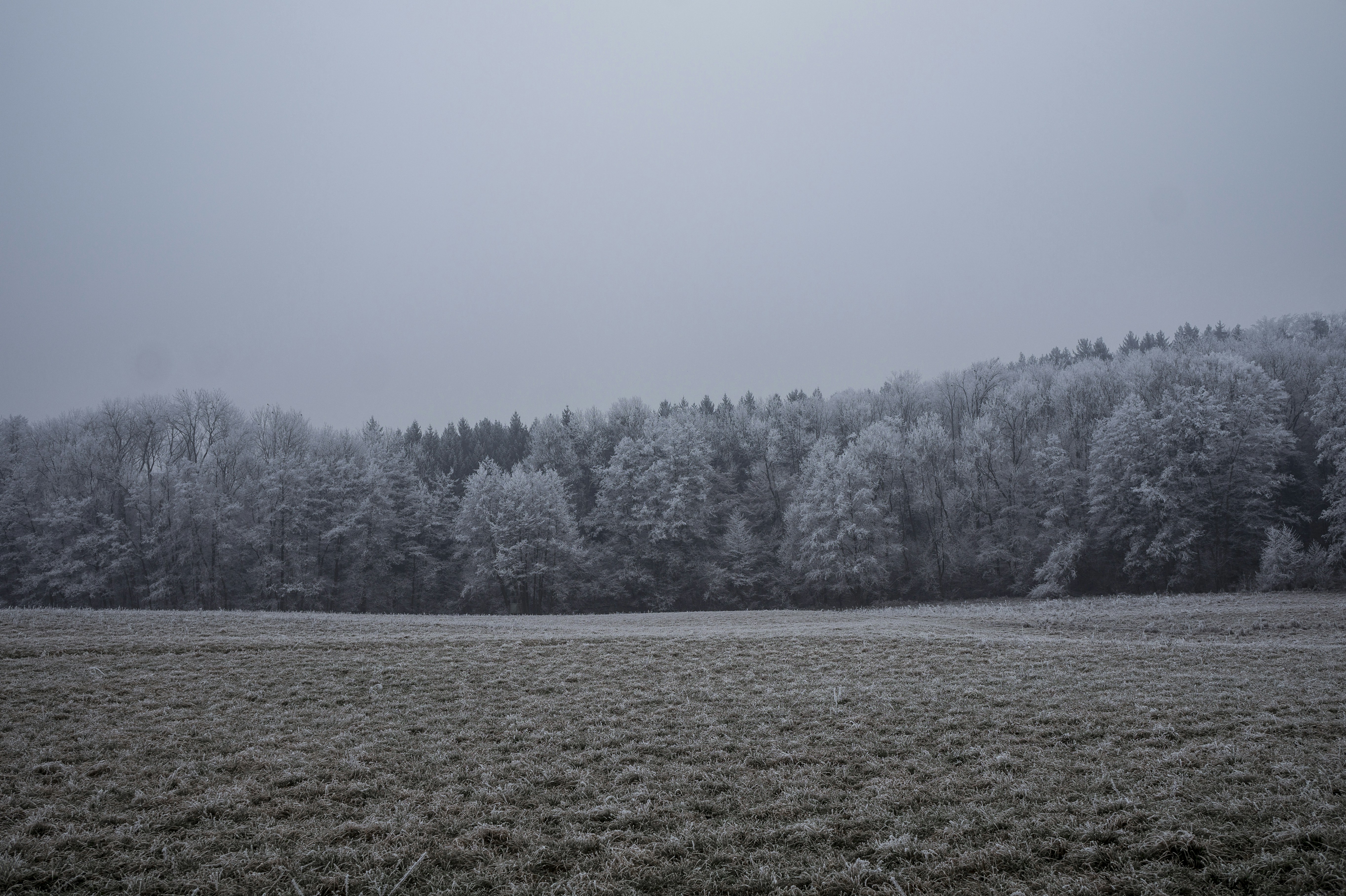覆盖着霜冻森林的草地