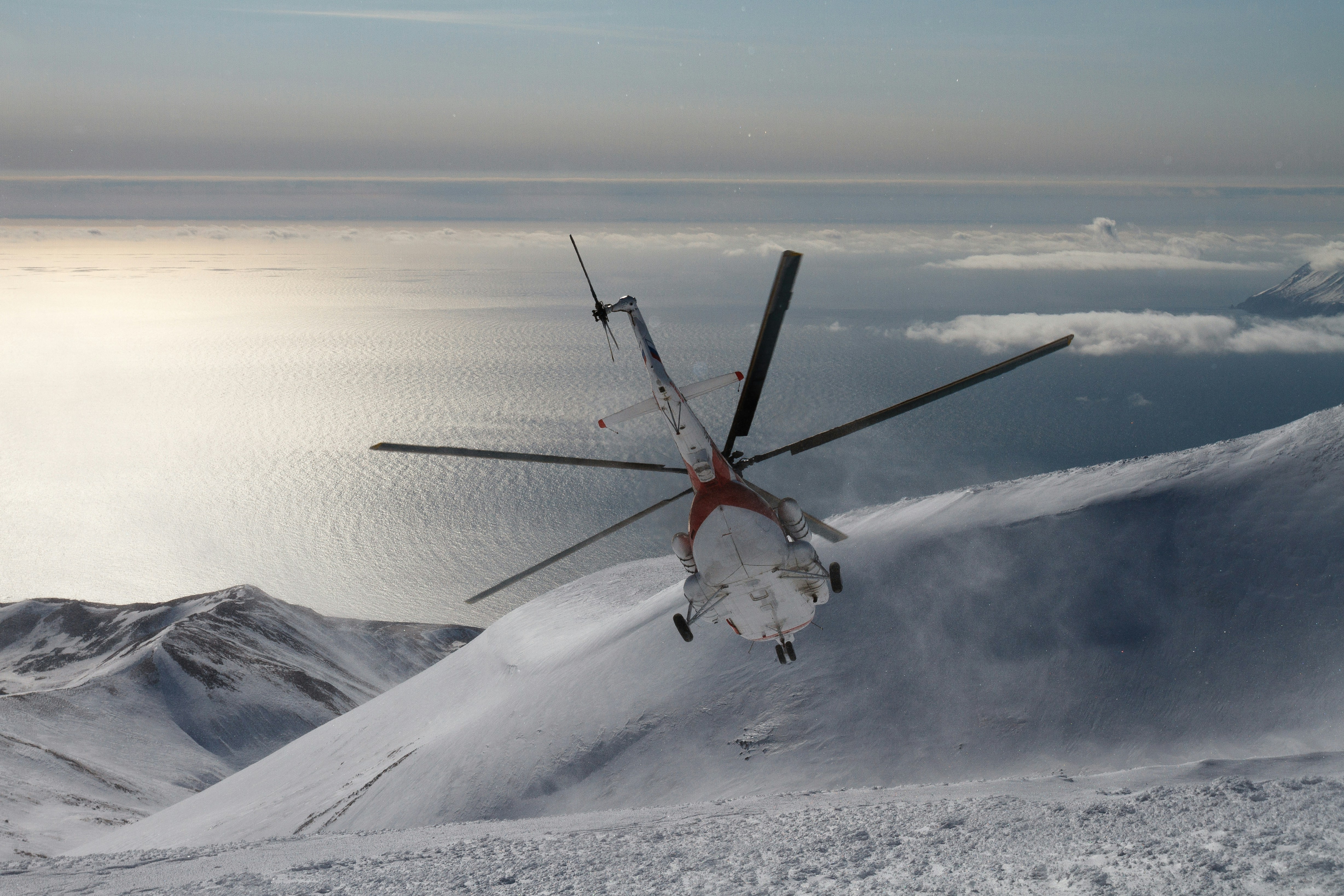 直升机、雪、湖、山、山