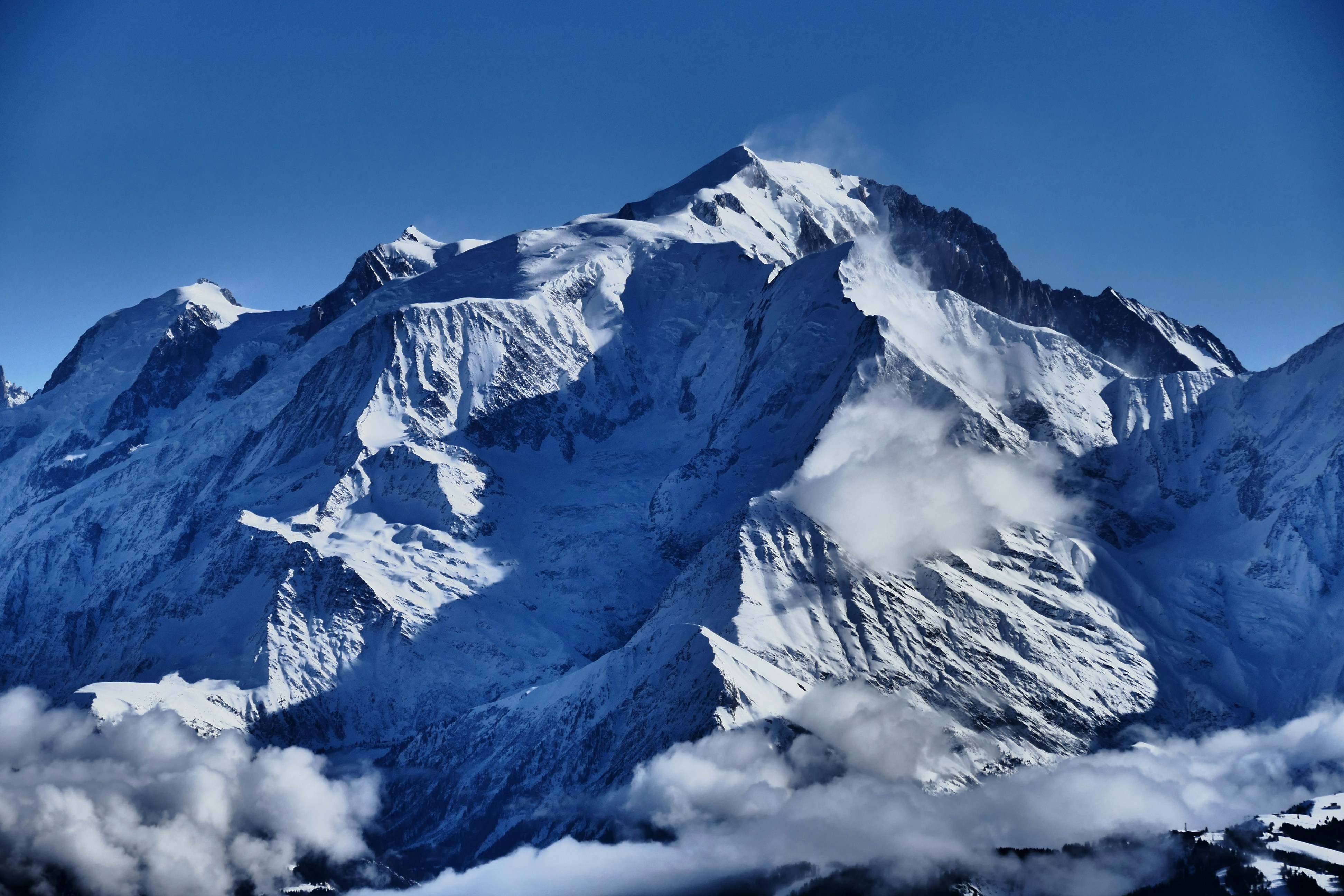 山,峰,峰,雪,蓝,天,尘,岩,崖,云,景,蓝天,勃朗峰,冰