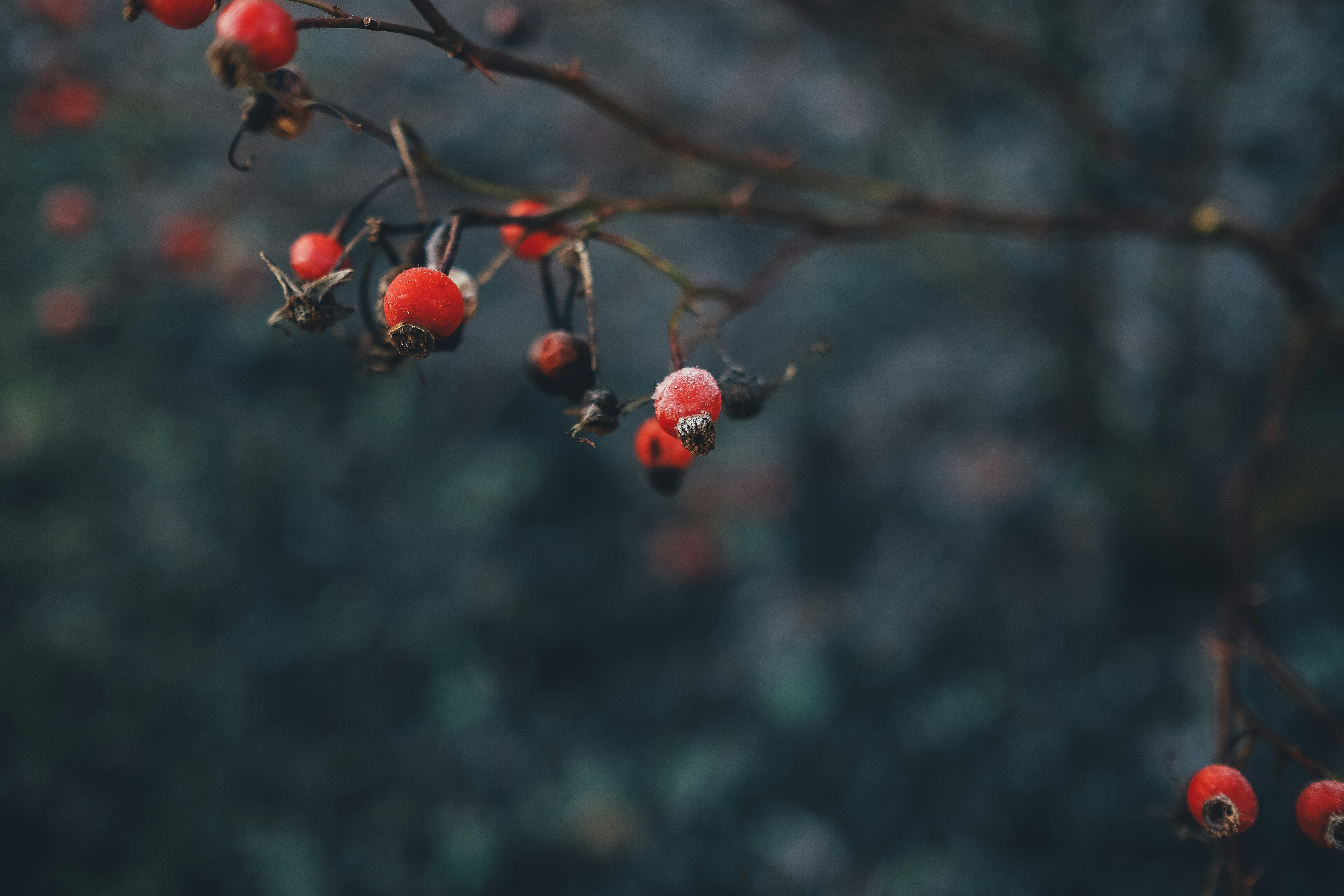浆果、树枝、霜、冰、雪、树