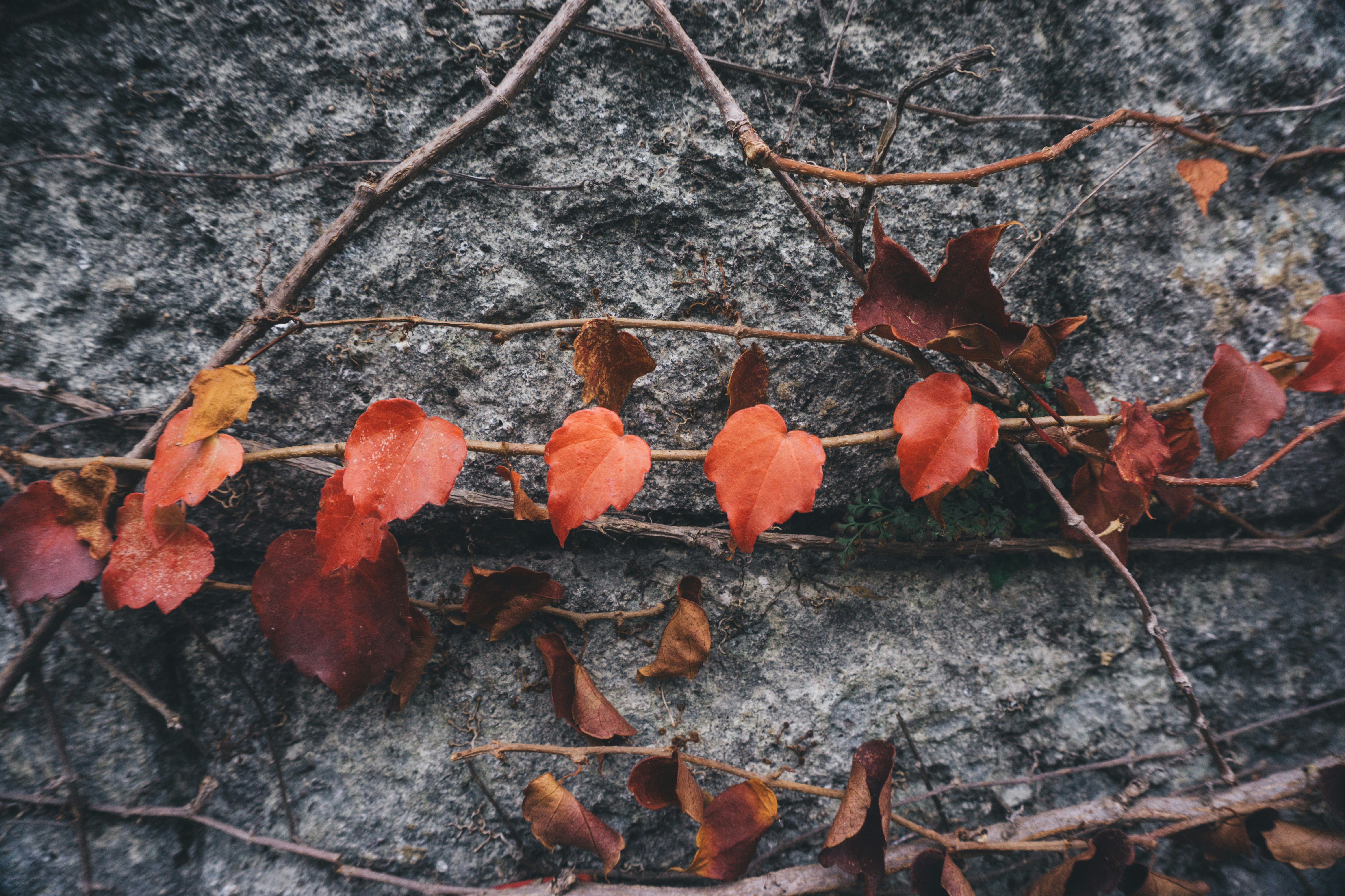 自然,墙壁,橙色,秋天,植物,红色,石头墙,树叶,石头,森林,秋天,树叶,叶子,常春藤