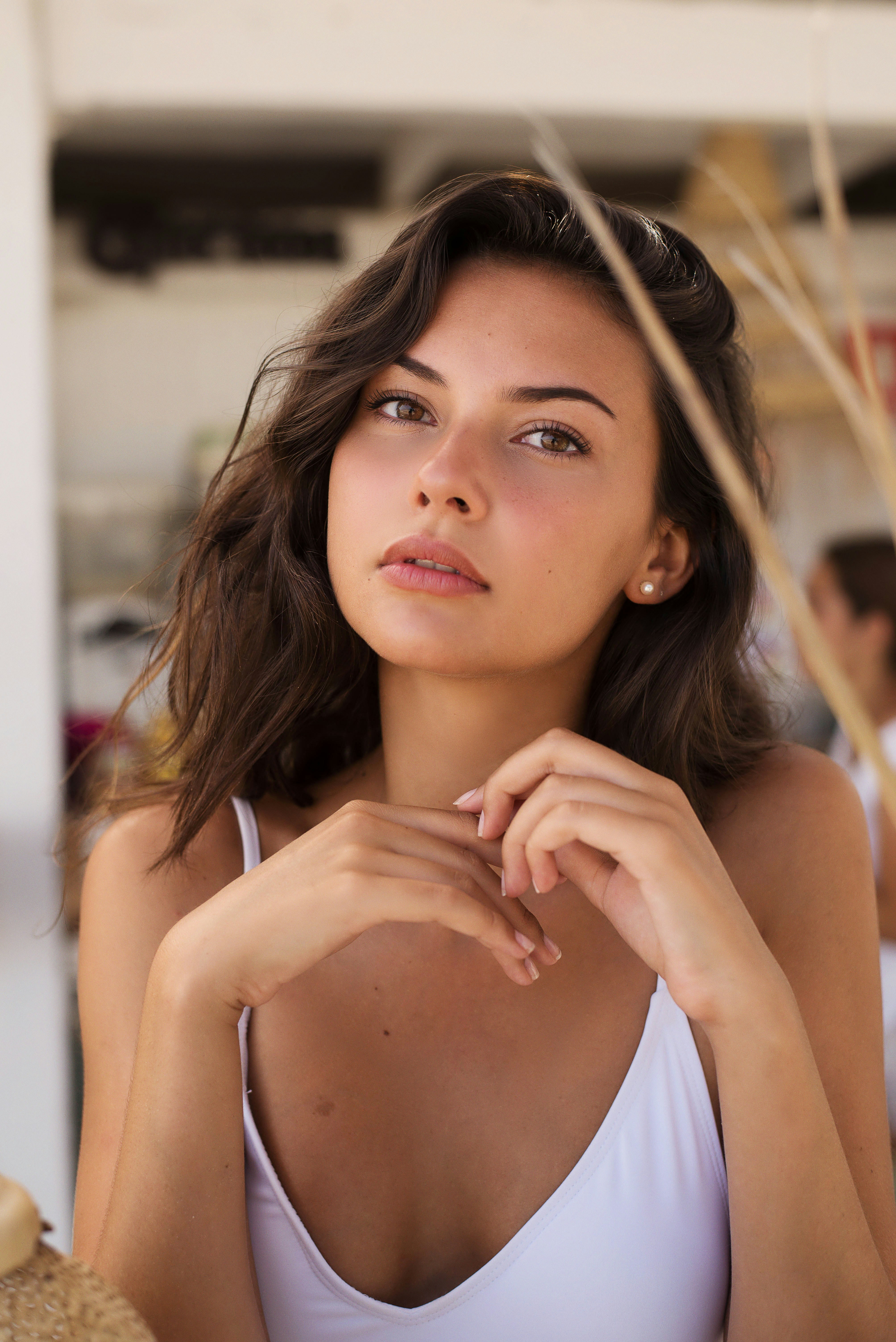 模特,女的,女人的,美丽的,夏日的氛围,夏日的阳光,黑发,黑发,白衣服,白色,夏威夷,尼康