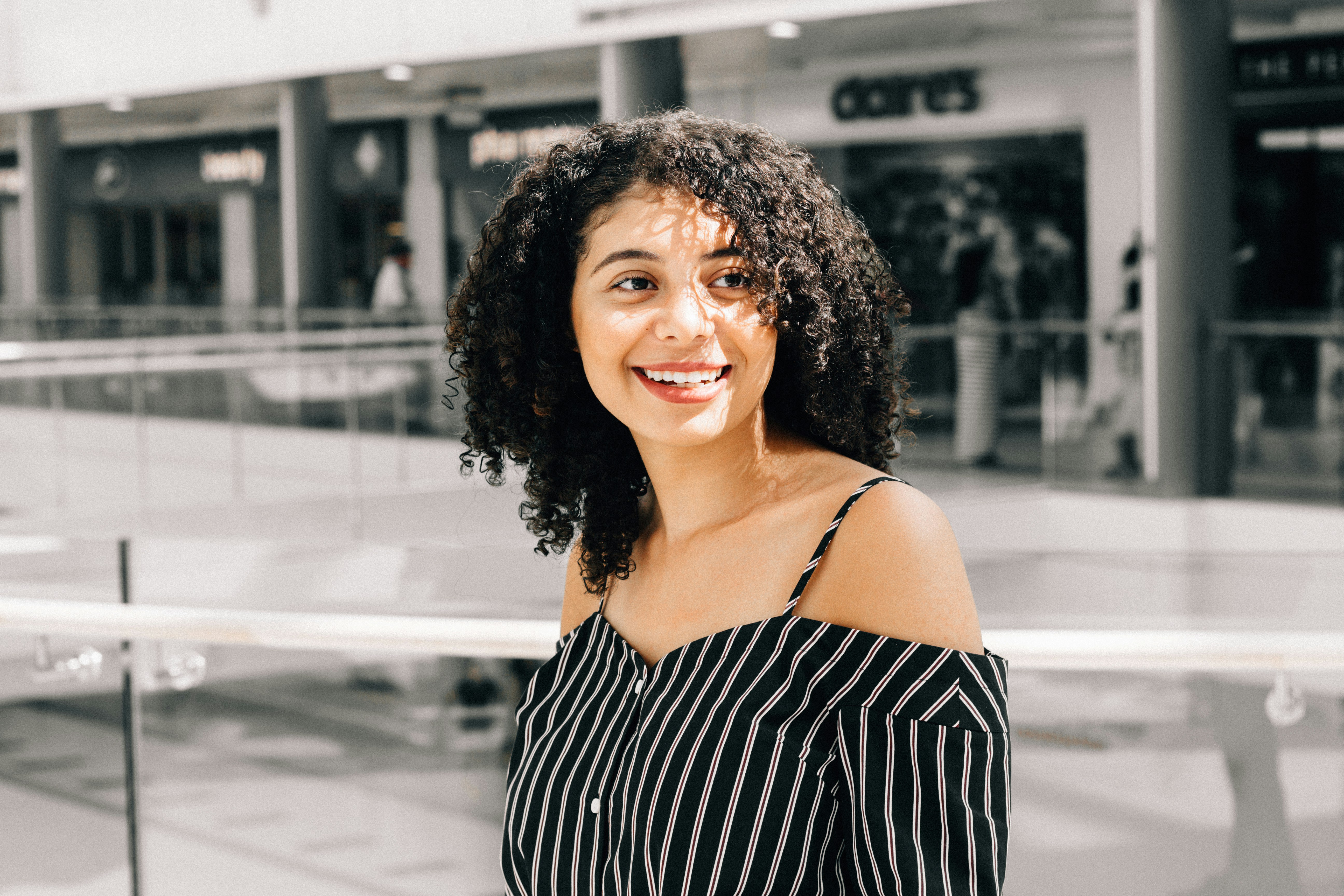女人,女人,非洲裔美国人,条纹,商店,商场,头发,女孩,朋友,卷曲,女朋友,画像,黑白相间,快乐,微笑